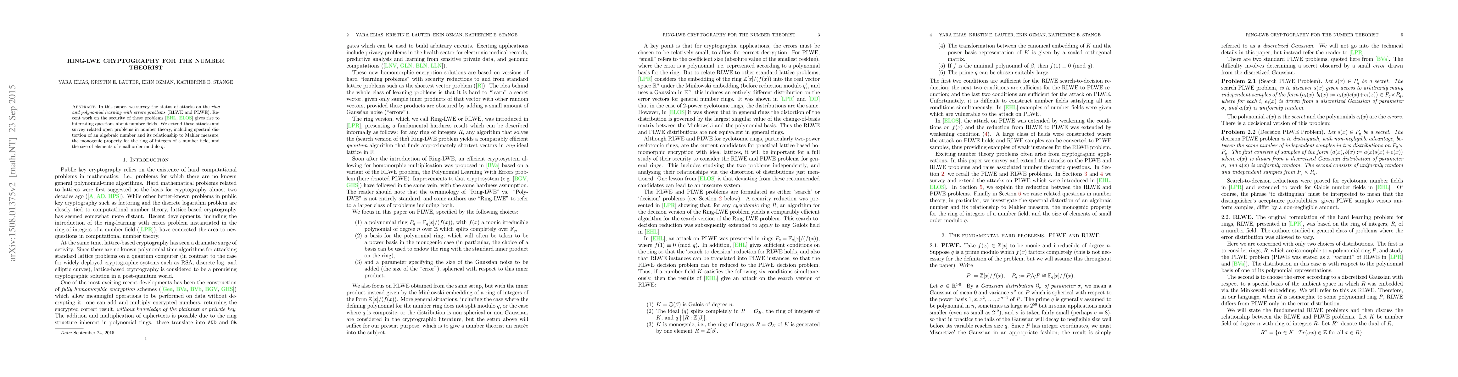 This paper surveys recent attacks on ring and polynomial learning with errors (RLWE and PLWE) cryptography, highlighting their implications for number theory, including spectral distortion, Mahler measure, and the monogenic property of number fields. It also discusses open problems related to the size of small order elements modulo q.