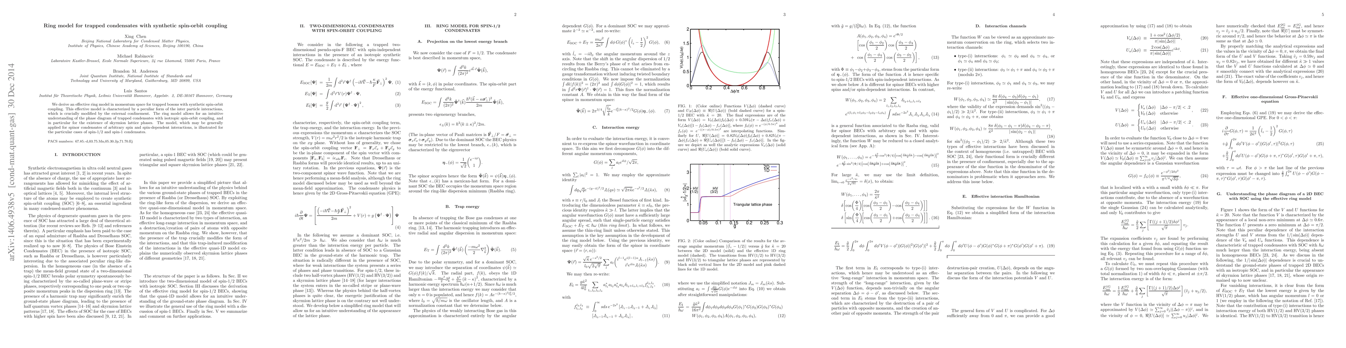 This paper develops an effective ring model for trapped bosons with synthetic spin-orbit coupling, revealing modified inter-particle interactions due to external confinement. The model elucidates the phase diagram of such condensates, including the emergence of skyrmion lattice phases, and is demonstrated for spin-1/2 and spin-1 condensates.