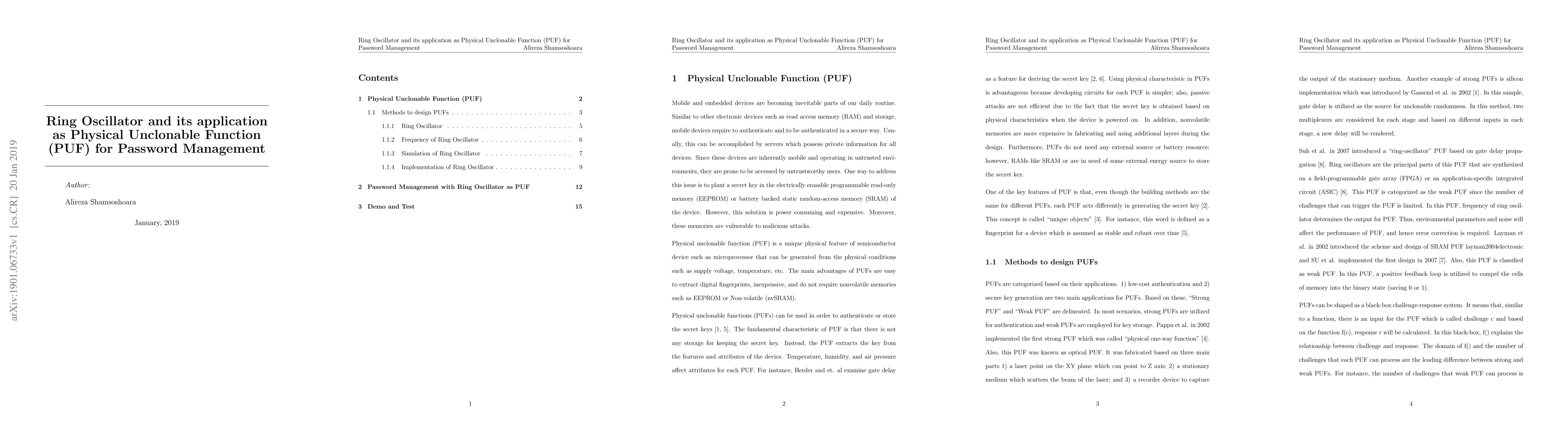 This paper explores the use of ring oscillators as physical unclonable functions (PUFs) to enhance password management security in mobile and embedded devices. By leveraging PUFs, the paper proposes a method to store user challenges securely, thereby improving the robustness against attacks compared to traditional hashing techniques.