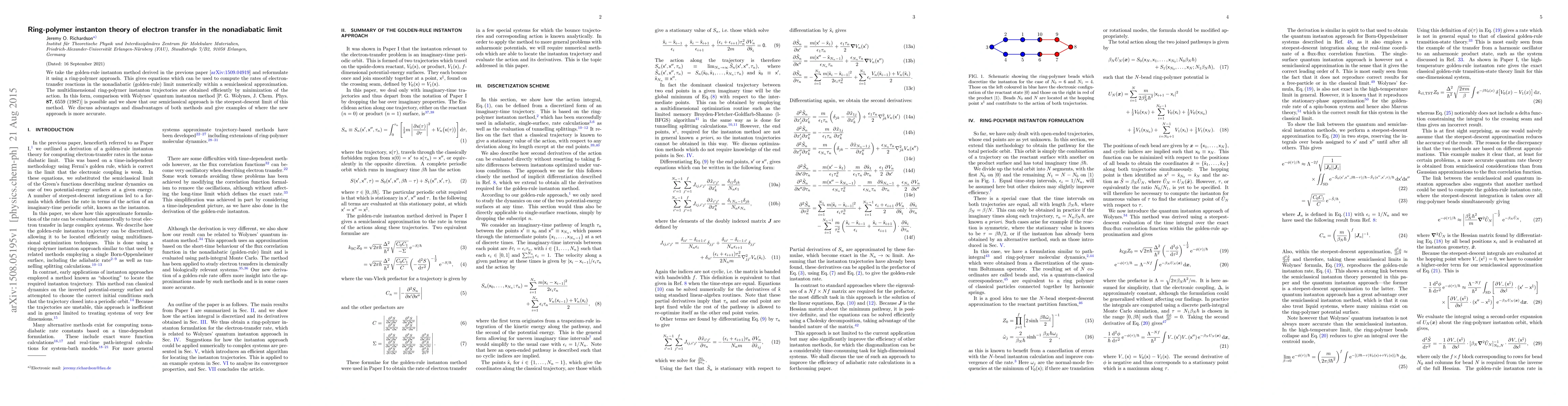 This paper reformulates the golden-rule instanton method using a ring-polymer approach to compute electron-transfer reaction rates in the nonadiabatic limit, showing that the semiclassical approach is the steepest-descent limit of Wolynes' quantum instanton method, and discusses its advantages over the latter.