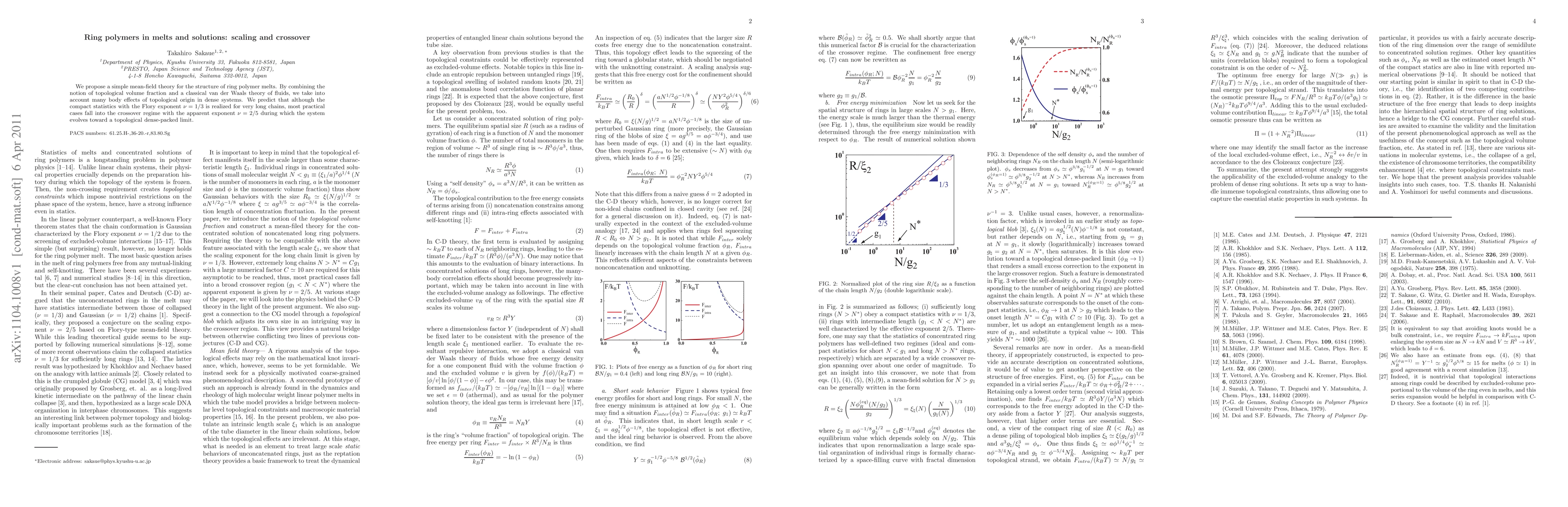 This paper proposes a mean-field theory for ring polymer melts, incorporating topological volume fraction and classical fluid theory to account for topological effects. It predicts a crossover from Flory's $\nu=1/3$ to an apparent $\nu=2/5$ exponent in practical systems, indicating a transition to a topological dense-packed state.