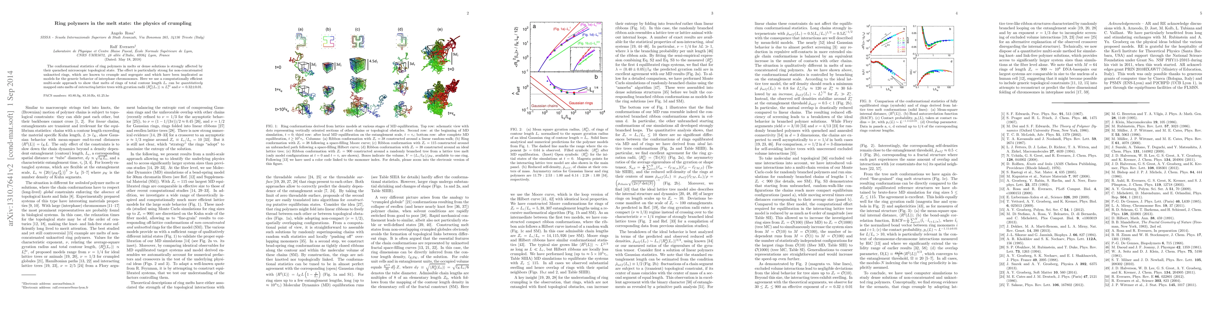 This paper demonstrates that the crumpled state of ring polymers in melts can be quantitatively mapped onto interacting lattice trees, revealing a gyration radius scaling relationship of $\langle R_g^2(L_r) \rangle \propto L_r^{2\nu}$ with $\nu=0.32\pm0.01$. This approach provides insights into the topological behavior of non-concatenated unknotted rings, relevant for modeling interphase chromosomes.
