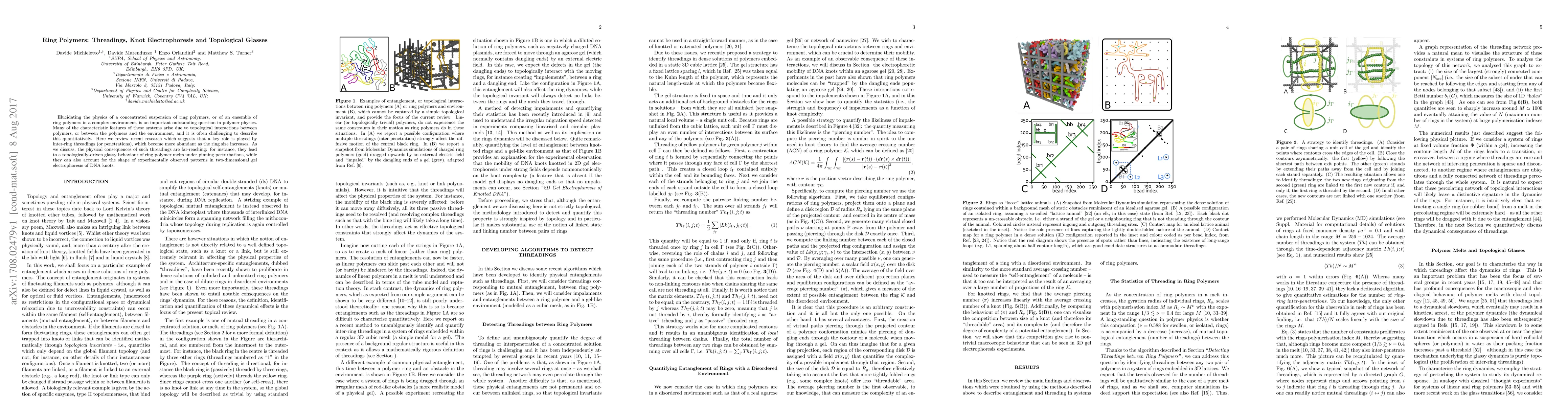 This paper reviews recent research on concentrated suspensions of ring polymers, highlighting the significant role of inter-ring threadings in their behavior. These threadings lead to topologically-driven glassy behavior and explain patterns seen in gel electrophoresis of DNA knots.