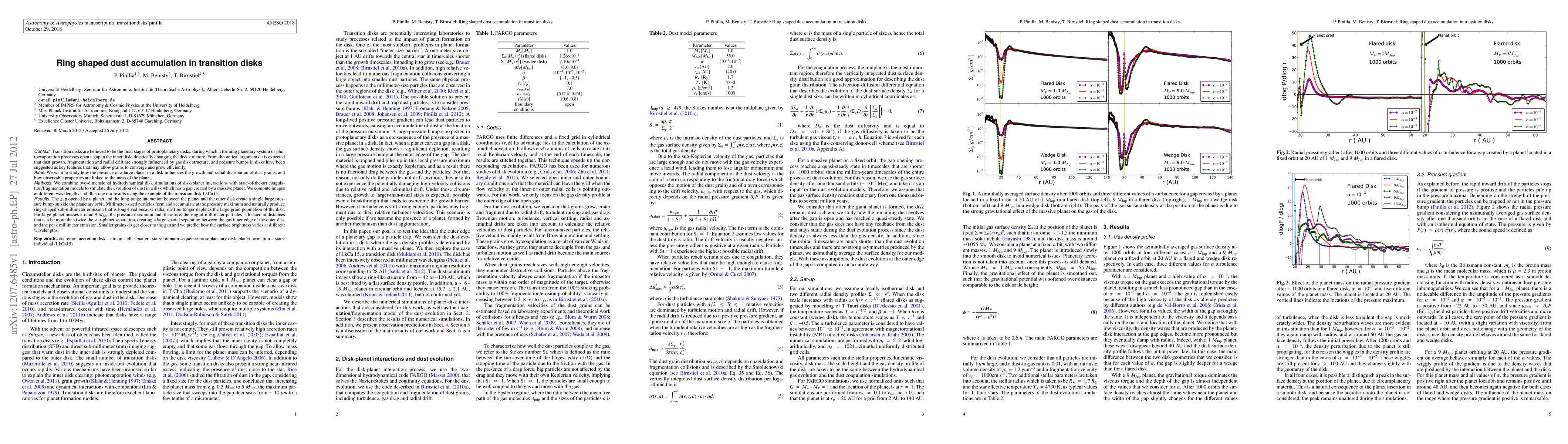 Context.Transition disks are believed to be the final stages of protoplanetary disks, during which a forming planetary system or photoevaporation processes open a gap in the inner disk, drastically changing the disk structure. From theoretical arguments it is expected that dust growth, fragmentation and radial drift are strongly influenced by gas disk structure, and pressure bumps in disks have been suggested as key features that may allow grains to converge and grow efficiently. Aims. We want to study how the presence of a large planet in a disk influences the growth and radial distribution of dust grains, and how observable properties are linked to the mass of the planet. Methods. We combine two-dimensional hydrodynamical disk simulations of disk-planet interactions with state-of-the-art coagulation/fragmentation models to simulate the evolution of dust in a disk which has a gap created by a massive planet. We compute images at different wavelengths and illustrate our results using the example of the transition disk LkCa15. Results. The gap opened by a planet and the long-range interaction between the planet and the outer disk create a single large pressure bump outside the planetary orbit. Millimeter-sized particles form and accumulate at the pressure maximum and naturally produce ring-shaped sub-millimeter emission that is long-lived because radial drift no longer depletes the large grain population of the disk. For large planet masses around 9 $M_{\mathrm{Jup}}$, the pressure maximum and, therefore, the ring of millimeter particles is located at distances that can be more than twice the star-planet separation, creating a large spatial separation between the gas inner edge of the outer disk and the peak millimeter emission. Smaller grains do get closer to the gap and we predict how the surface brightness varies at different wavelengths.
