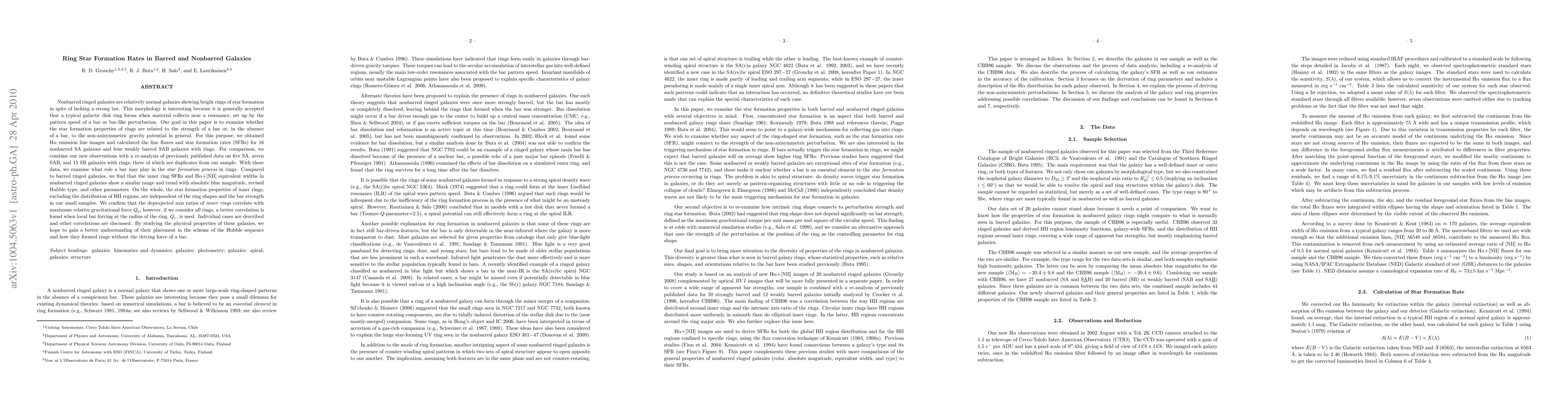 Nonbarred ringed galaxies are relatively normal galaxies showing bright rings of star formation in spite of lacking a strong bar. This morphology is interesting because it is generally accepted that a typical ring forms when material collects near a resonance, set up by the pattern speed of a bar or bar-like perturbation. Our goal in this paper is to examine whether the ring star formation properties are related to the non-axisymmetric gravity potential in general. For this purpose, we obtained H{\alpha} emission line images and calculated the line fluxes and star formation rates (SFRs) for 16 nonbarred SA galaxies and four weakly barred SAB galaxies with rings. For comparison, we combine our observations with a re-analysis of previously published data on five SA, seven SAB, and 15 SB galaxies with rings, three of which are duplicates from our sample. With these data, we examine what role a bar may play in the star formation process in rings. Compared to barred ringed galaxies, we find that the inner ring SFRs and H{\alpha}+[N ii] equivalent widths in nonbarred ringed galaxies show a similar range and trend with absolute blue magnitude, revised Hubble type, and other parameters. On the whole, the star formation properties of inner rings, excluding the distribution of H ii regions, are independent of the ring shapes and the bar strength in our small samples. We confirm that the deprojected axis ratios of inner rings correlate with maximum relative gravitational force Q_g; however, if we consider all rings, a better correlation is found when local bar forcing at the radius of the ring, Q_r, is used. Individual cases are described and other correlations are discussed. By studying the physical properties of these galaxies, we hope to gain a better understanding of their placement in the scheme of the Hubble sequence and how they formed rings without the driving force of a bar.
