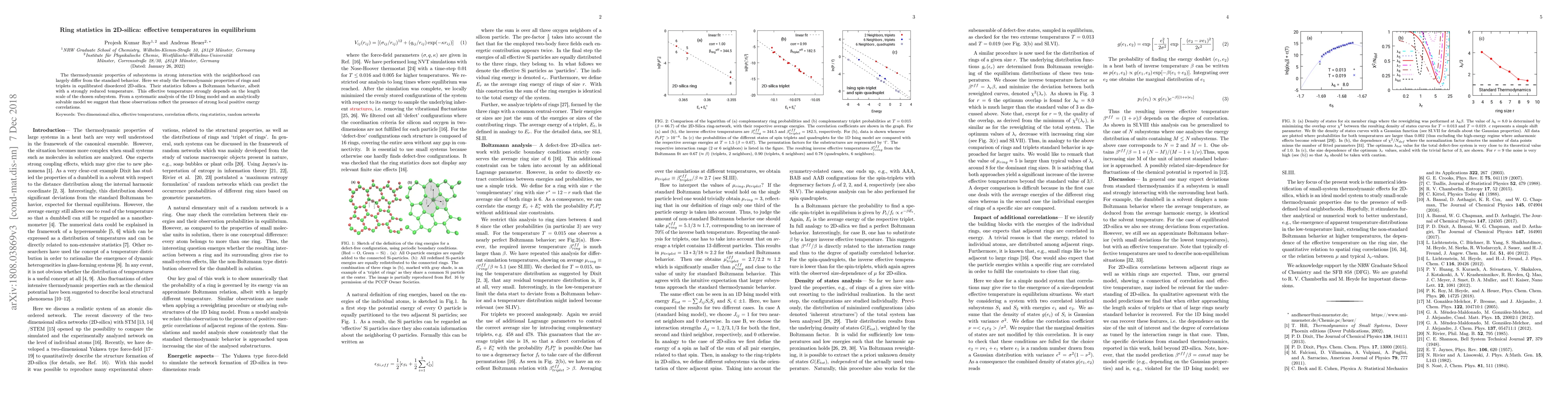 The thermodynamic properties of subsystems in strong interaction with the neighborhood can largely differ from the standard behavior. Here we study the thermodynamic properties of rings and triplets in equilibrated disordered 2D-silica. Their statistics follows a Boltzmann behavior, albeit with a strongly reduced temperature. This effective temperature strongly depends on the length scale of the chosen subsystem. From a systematic analysis of the 1D Ising model and an analytically solvable model we suggest that these observations reflect the presence of strong local positive energy correlations.