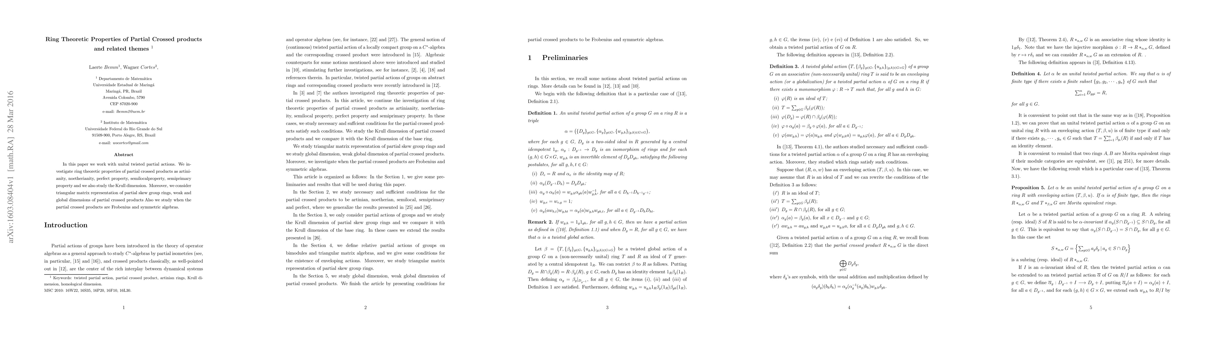 This paper explores the ring-theoretic properties of partial crossed products, including artinianity, noetherianity, and Krull dimension, and examines their triangular matrix representations, dimensions, and conditions for being Frobenius or symmetric algebras.
