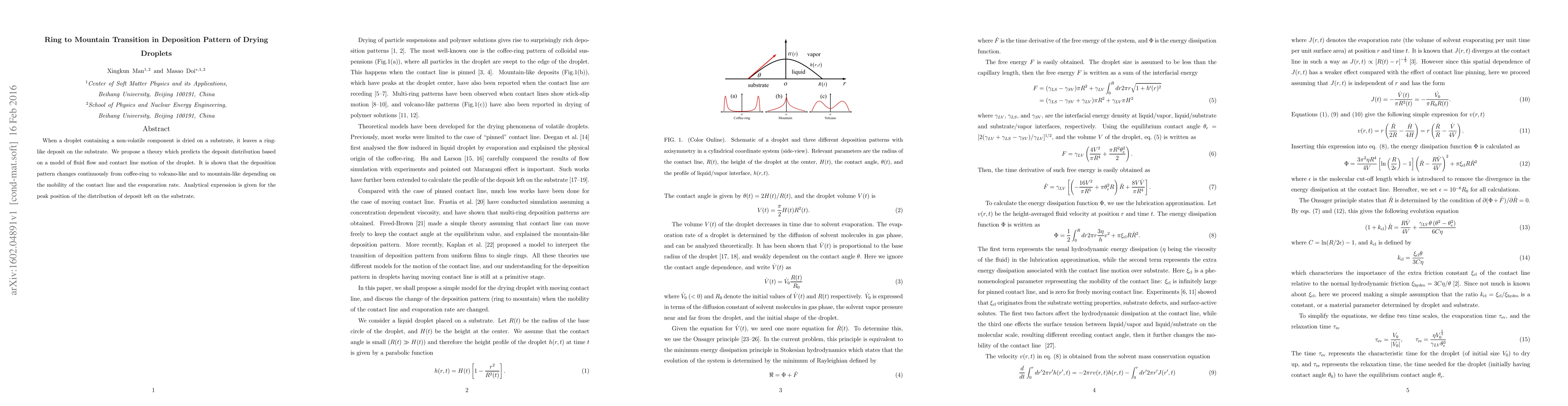 Researchers propose a theory explaining how droplets dry on substrates, revealing a transition from coffee-ring to volcano-like and mountain-like deposits depending on evaporation rates and contact line mobility.