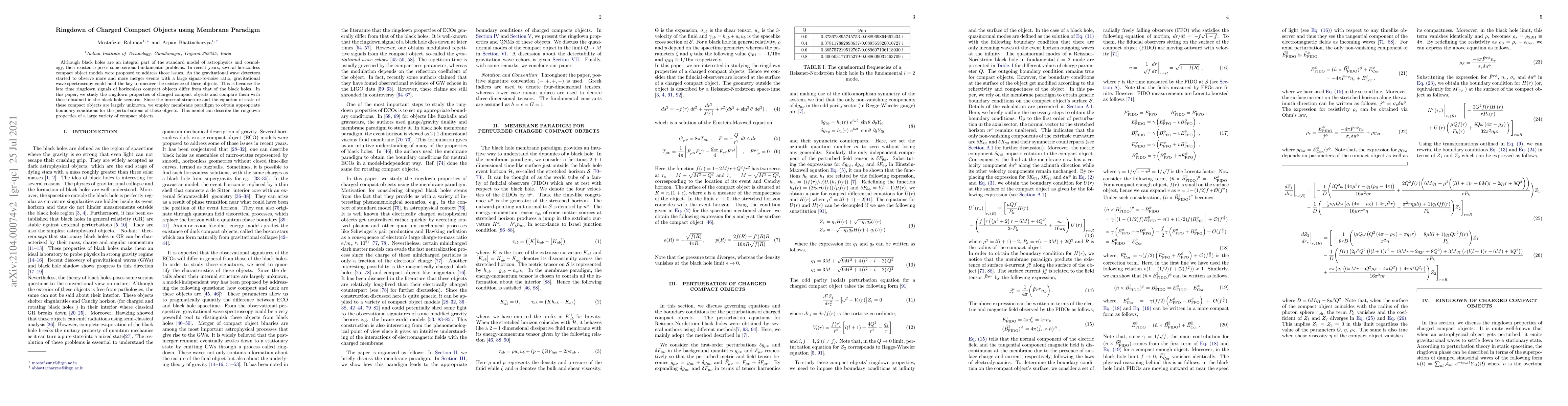 Although the black holes are an integral part of the standard model of astrophysics and cosmology, their existence poses some serious fundamental problems. In recent years, several horizonless compact object models were proposed to address those issues. As the gravitational wave detectors started to observe more and more merger events with a large signal-to-noise ratio, gravitational wave spectroscopy could hold the key to uncover the existence of these objects. This is because the late time ringdown signals of horizonless compact objects differ from that of the black holes. In this paper, we study the ringdown properties of charged compact objects and compare them with those obtained in the black hole scenario. Since the internal structure and the equation of state of these compact objects are largely unknown, we employ membrane paradigm to obtain appropriate boundary conditions for the perturbations of these objects. This model can describe the ringdown properties of a large variety of compact objects.