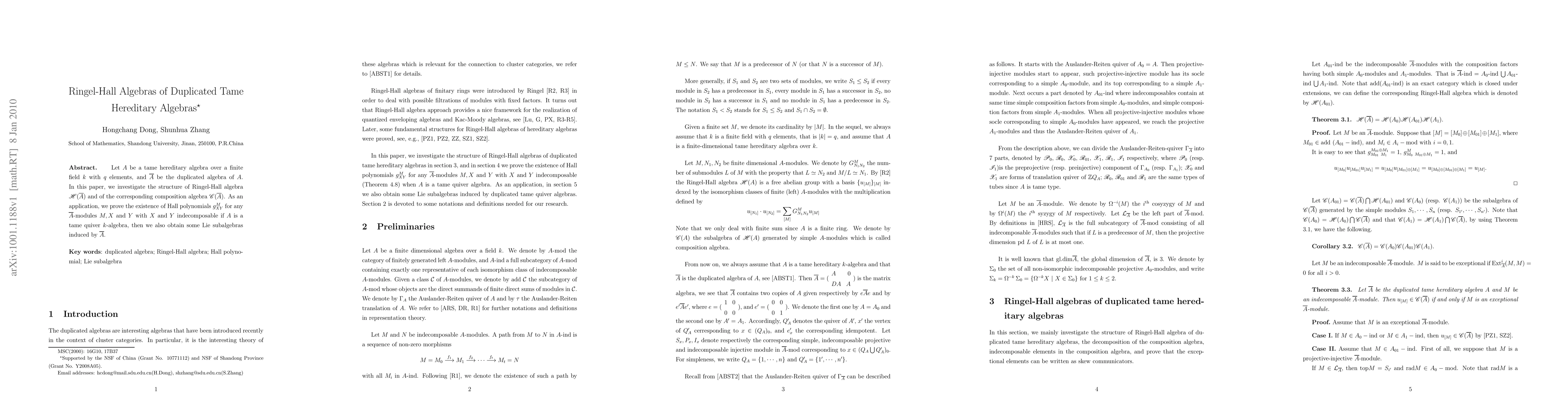 This paper explores the structure of Ringel-Hall algebras for duplicated tame hereditary algebras and their corresponding composition algebras. It proves the existence of Hall polynomials for specific modules and identifies induced Lie subalgebras.