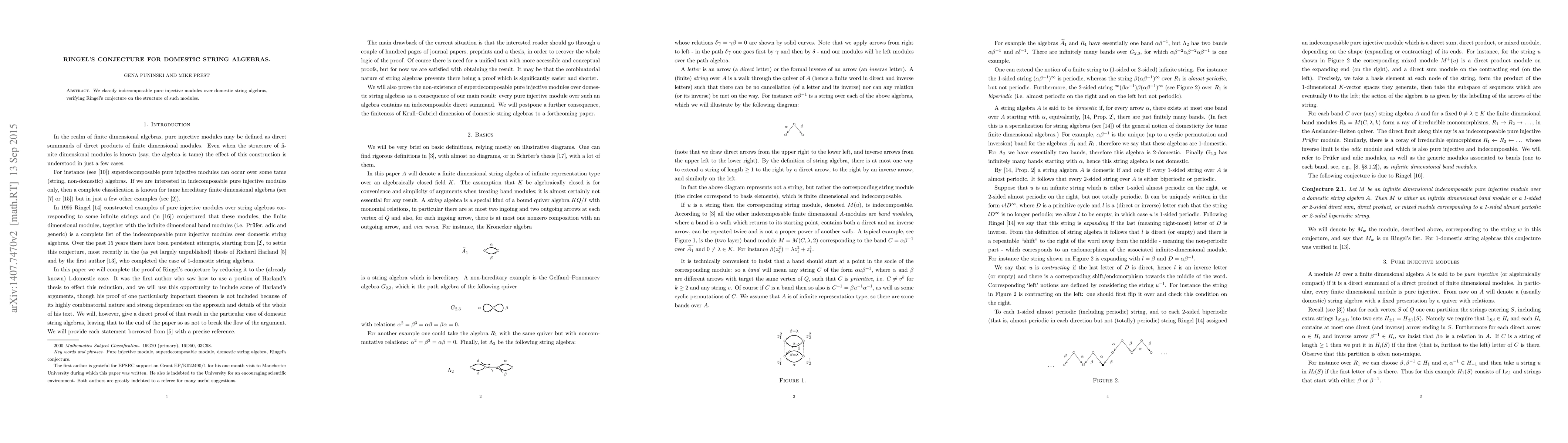 This paper classifies indecomposable pure injective modules over domestic string algebras and confirms Ringel's conjecture regarding their structure. The findings provide a comprehensive understanding of these modules in the context of string algebras.