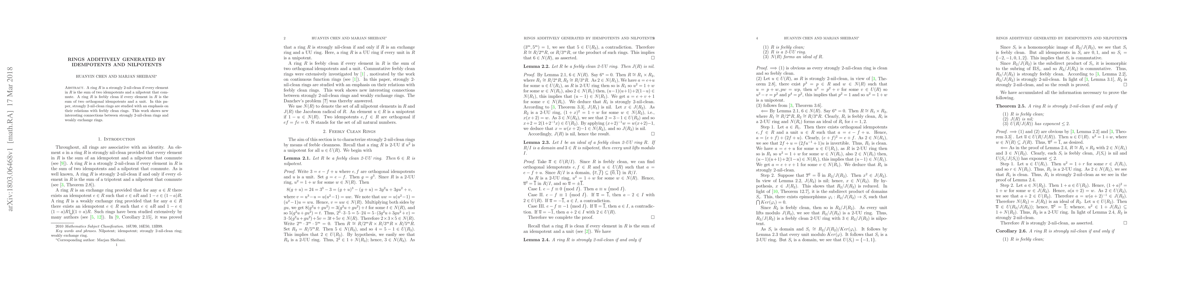 This paper investigates strongly 2-nil-clean rings where every element is the sum of two commuting idempotents and a nilpotent, exploring their connections to feebly clean rings, which consist of sums of orthogonal idempotents and units, and reveals new links to weakly exchange rings.