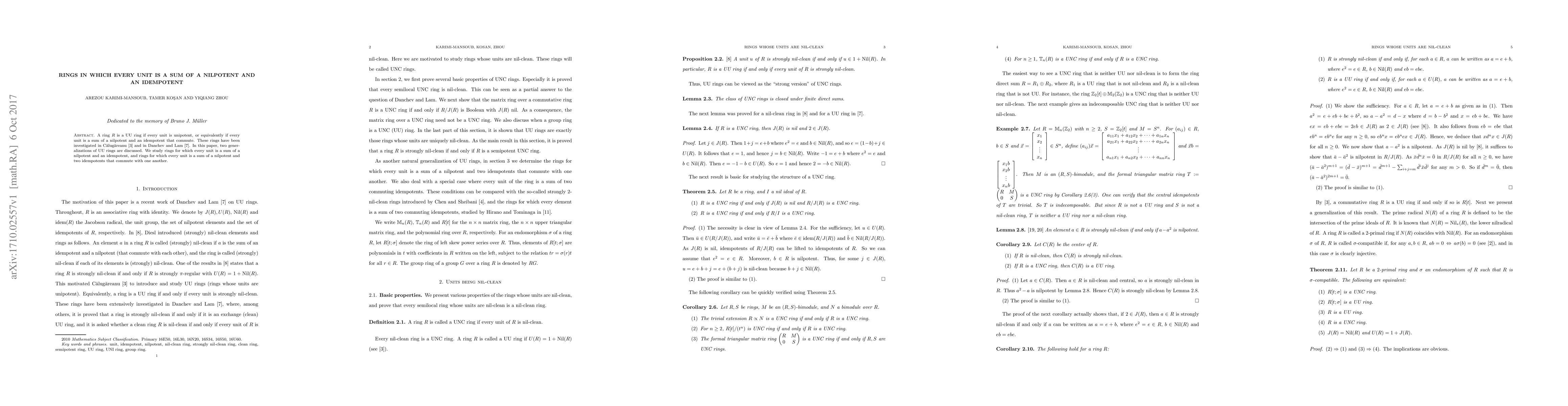 This paper investigates two generalizations of UU rings, focusing on rings where every unit is a sum of a nilpotent and an idempotent, and further where every unit is a sum of a nilpotent and two commuting idempotents. These studies expand on previous works by Călugăreanu and Danchev and Lam.