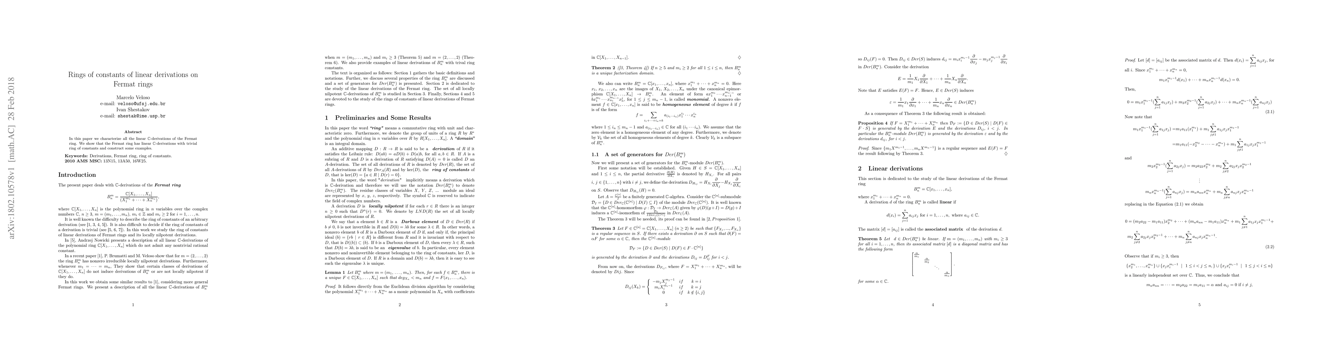 The research sheds light on the structure and behavior of linear derivations on Fermat rings, with potential implications for algebraic geometry and number theory.