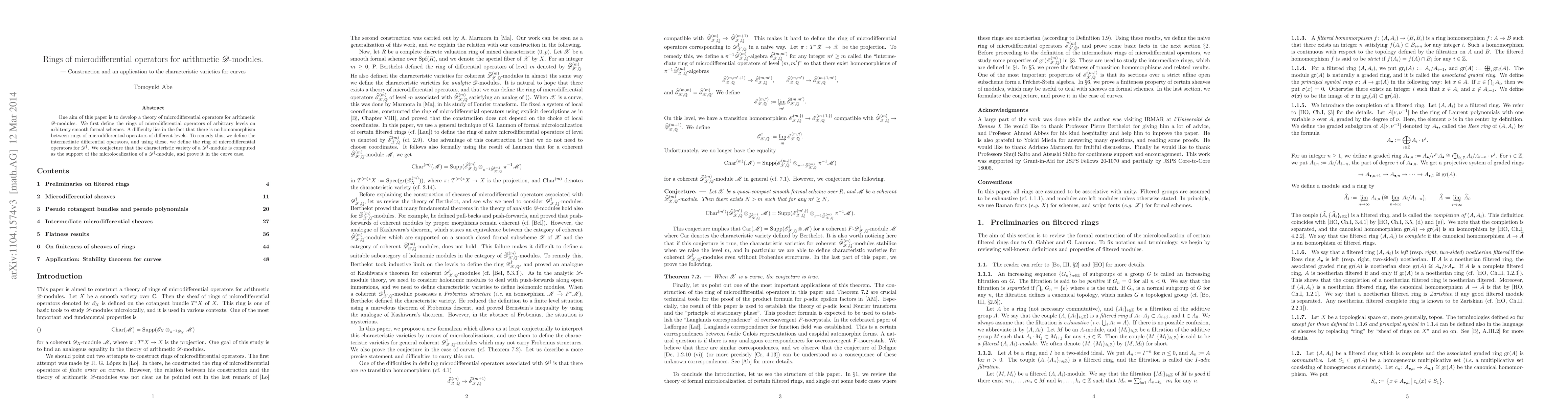 This paper develops a theory of microdifferential operators for arithmetic $\mathscr{D}$-modules, defining sheaves of microdifferential operators on smooth formal schemes. To address the lack of homomorphisms between operators of different levels, it introduces intermediate differential operators and defines a sheaf for $\mathscr{D}^\dag$, proving the conjectured computation of the characteristic variety in the curve case.