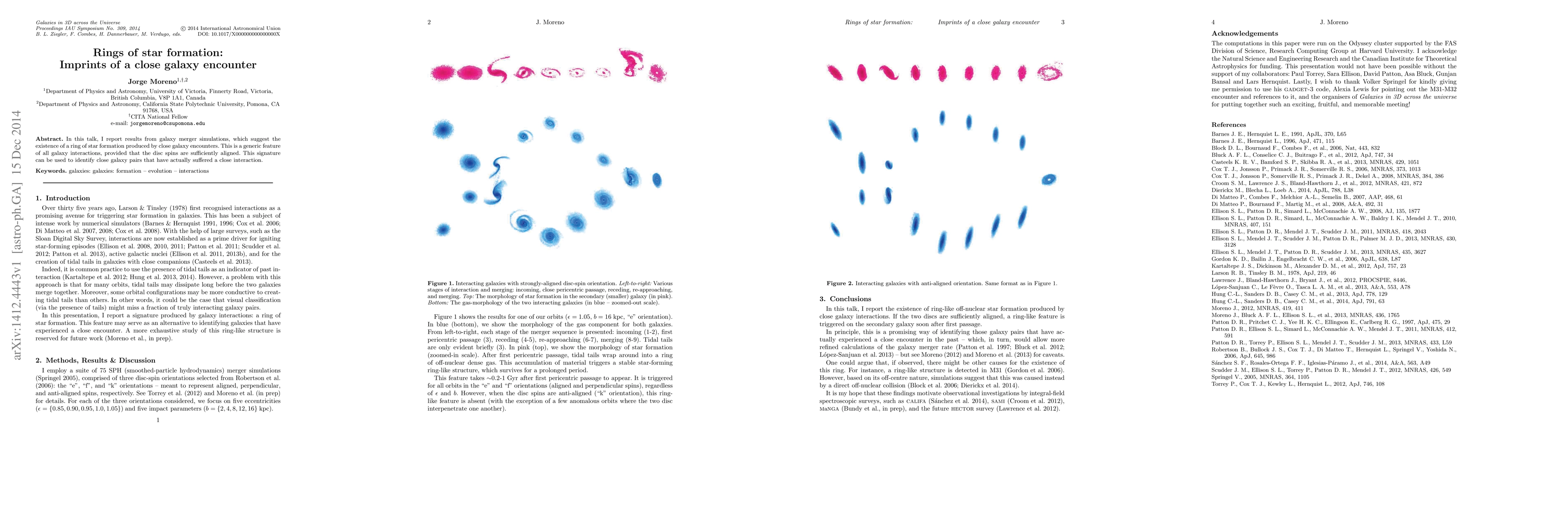 In this talk, I report results from galaxy merger simulations, which suggest the existence of a ring of star formation produced by close galaxy encounters. This is a generic feature of all galaxy interactions, provided that the disc spins are sufficiently aligned. This signature can be used to identify close galaxy pairs that have actually suffered a close interaction.