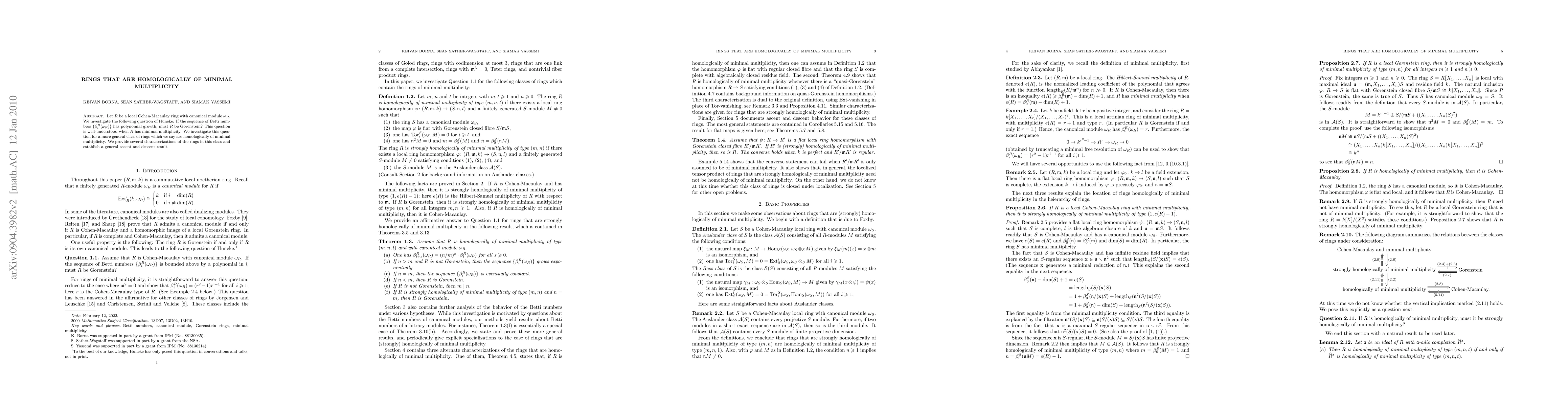 Let R be a local Cohen-Macaulay ring with canonical module \omega_R. We investigate the following question of Huneke: If the sequence of Betti numbers \{\beta_i^R(\omega_R)\} has polynomial growth, must R be Gorenstein? This question is well-understood when R has minimal multiplicity. We investigate this question for a more general class of rings which we say are homologically of minimal multiplicity. We provide several characterizations of the rings in this class and establish a general ascent and descent result.