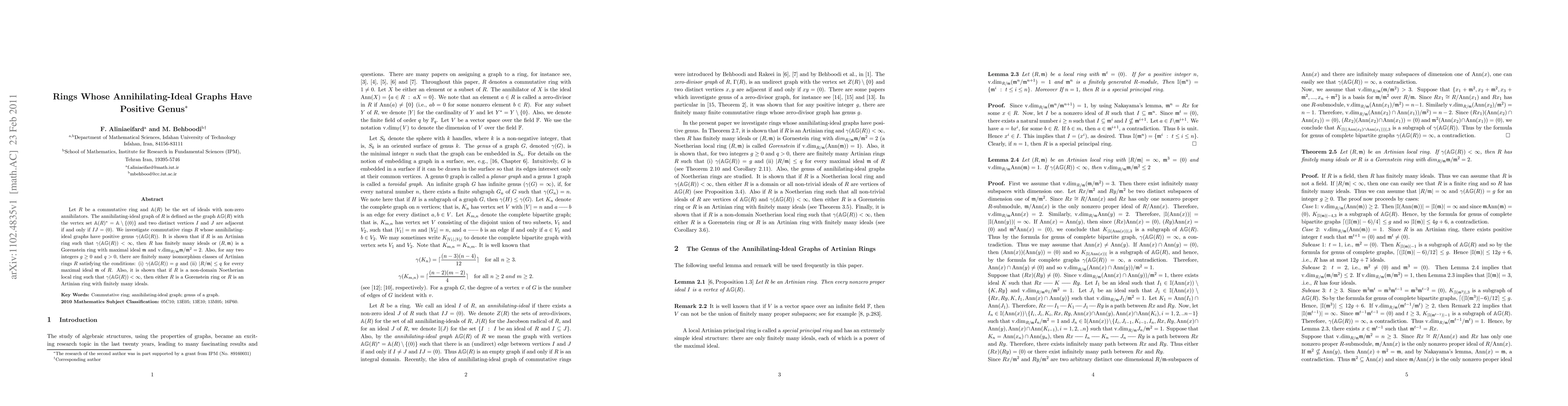This paper explores commutative rings whose annihilating-ideal graphs have positive genus. It finds that Artinian rings with finite genus are either finite in ideals or Gorenstein with specific dimension conditions, and establishes finiteness results for such rings under certain constraints.