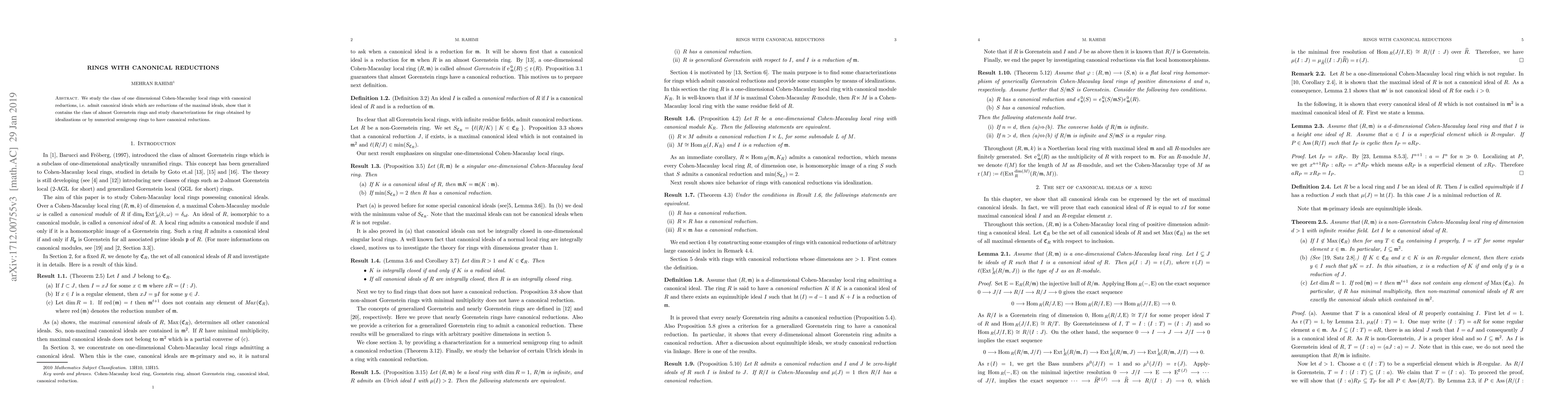 This paper investigates one-dimensional Cohen-Macaulay local rings with a canonical ideal $K$ that reduces the maximal ideal $\mathfrak{m}$. It demonstrates that rings with canonical reduction encompass almost Gorenstein rings and explores their connections with rings formed through idealizations and numerical semigroup rings.