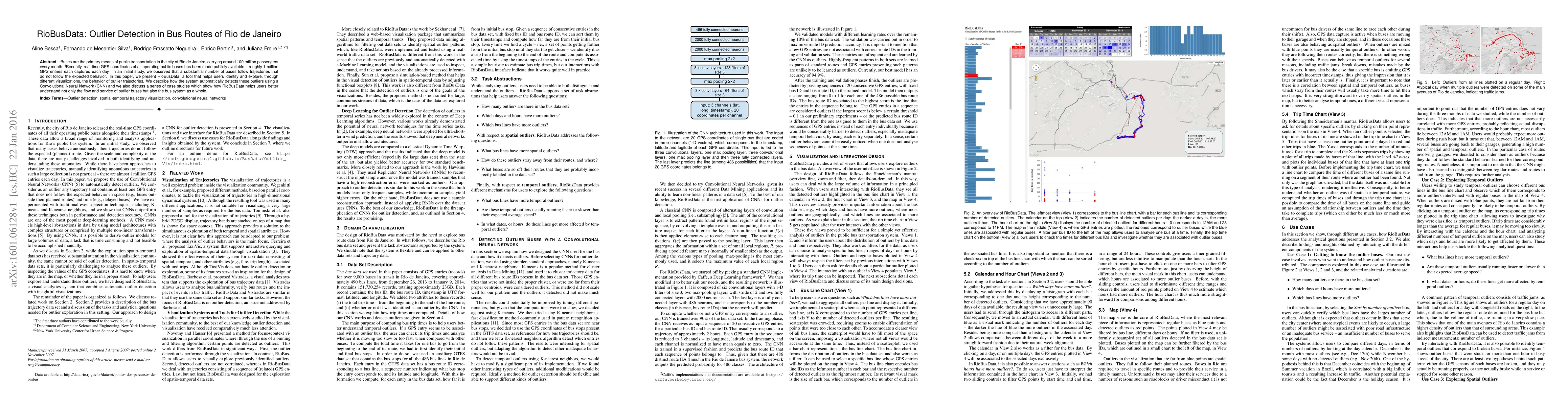 Buses are the primary means of public transportation in the city of Rio de Janeiro, carrying around 100 million passengers every month. Recently, real-time GPS coordinates of all operating public buses has been made publicly available - roughly 1 million GPS entries each captured each day. In an initial study, we observed that a substantial number of buses follow trajectories that do not follow the expected behavior. In this paper, we present RioBusData, a tool that helps users identify and explore, through different visualizations, the behavior of outlier trajectories. We describe how the system automatically detects these outliers using a Convolutional Neural Network (CNN) and we also discuss a series of case studies which show how RioBusData helps users better understand not only the flow and service of outlier buses but also the bus system as a whole.