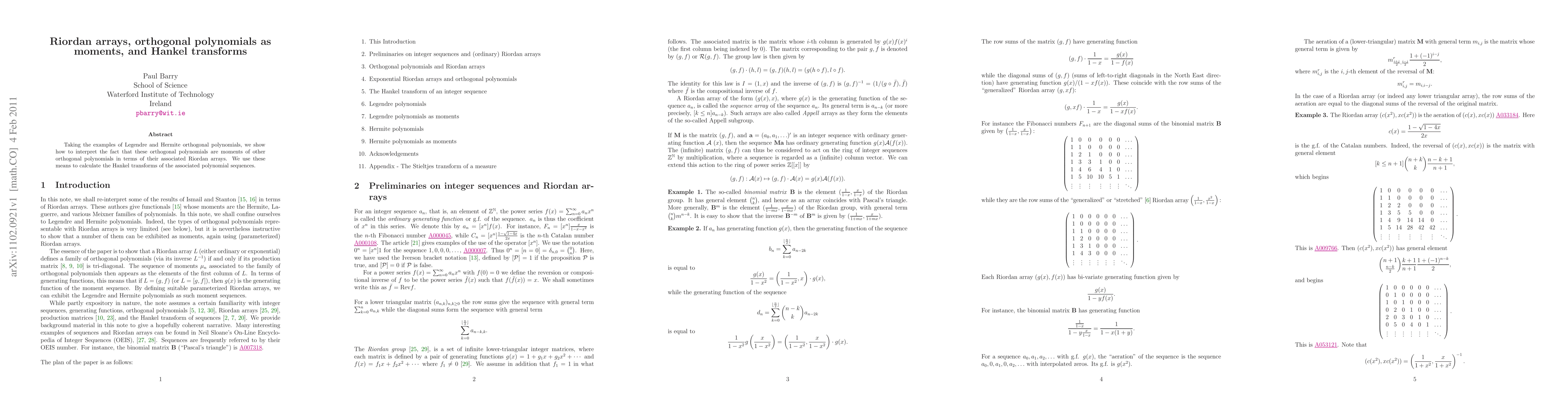 Taking the examples of Legendre and Hermite orthogonal polynomials, we show how to interpret the fact that these orthogonal polynomials are moments of other orthogonal polynomials in terms of their associated Riordan arrays. We use these means to calculate the Hankel transforms of the associated polynomial sequences.