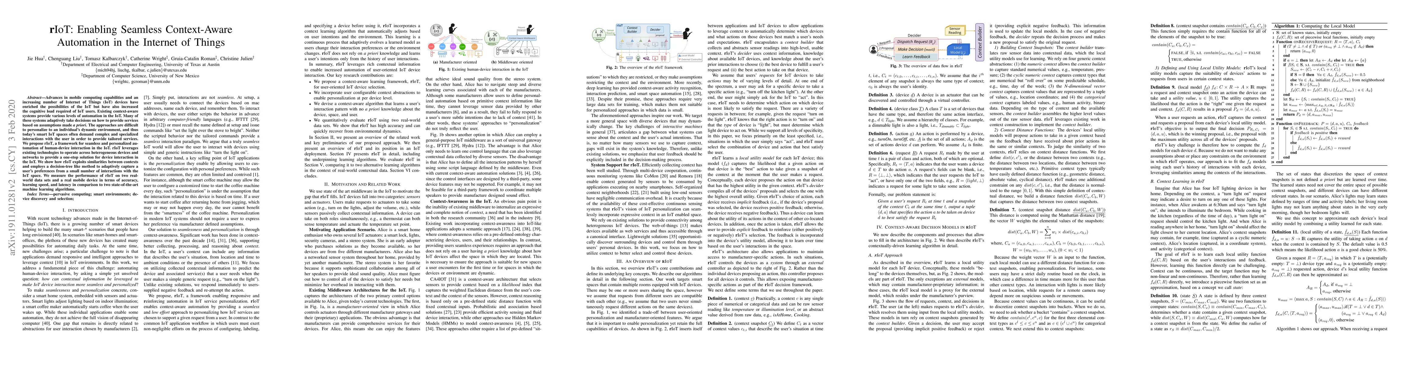 The paper proposes rIoT, a framework for personalized automation in IoT, leveraging existing technologies for seamless human-device interaction. rIoT adaptively learns user preferences through minimal interactions and is evaluated against state-of-the-art algorithms in terms of accuracy, learning speed, and latency.