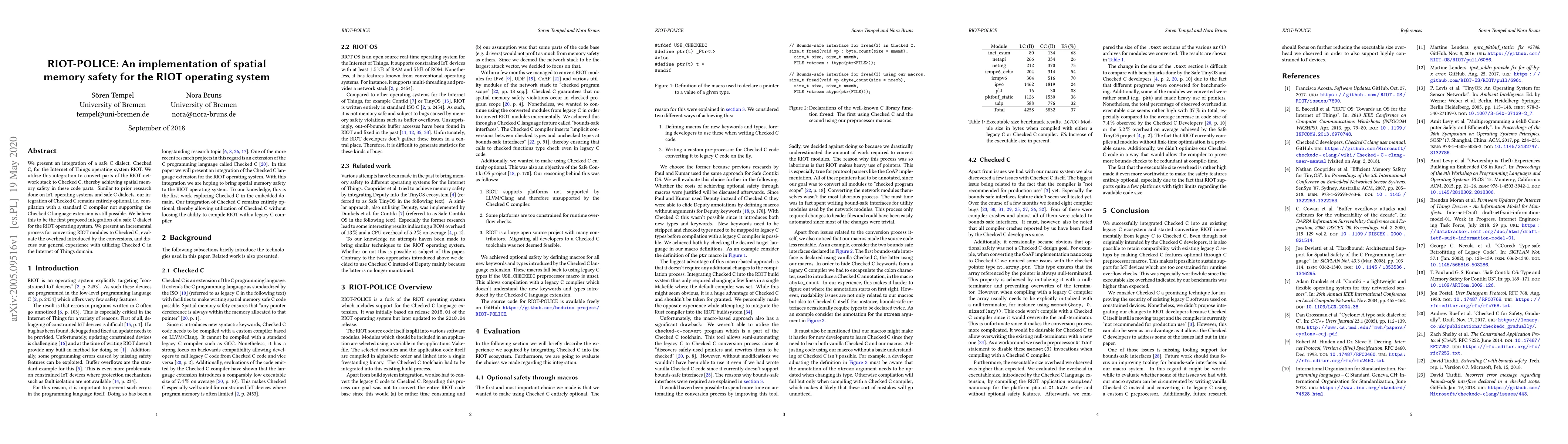 We present an integration of a safe C dialect, Checked C, for the Internet of Things operating system RIOT. We utilize this integration to convert parts of the RIOT network stack to Checked C, thereby achieving spatial memory safety in these code parts. Similar to prior research done on IoT operating systems and safe C dialects, our integration of Checked C remains entirely optional, i.e. compilation with a standard C compiler not supporting the Checked C language extension is still possible. We believe this to be the first proposed integration of a safe C dialect for the RIOT operating system. We present an incremental process for converting RIOT modules to Checked C, evaluate the overhead introduced by the conversions, and discuss our general experience with utilizing Checked C in the Internet of Things domain.