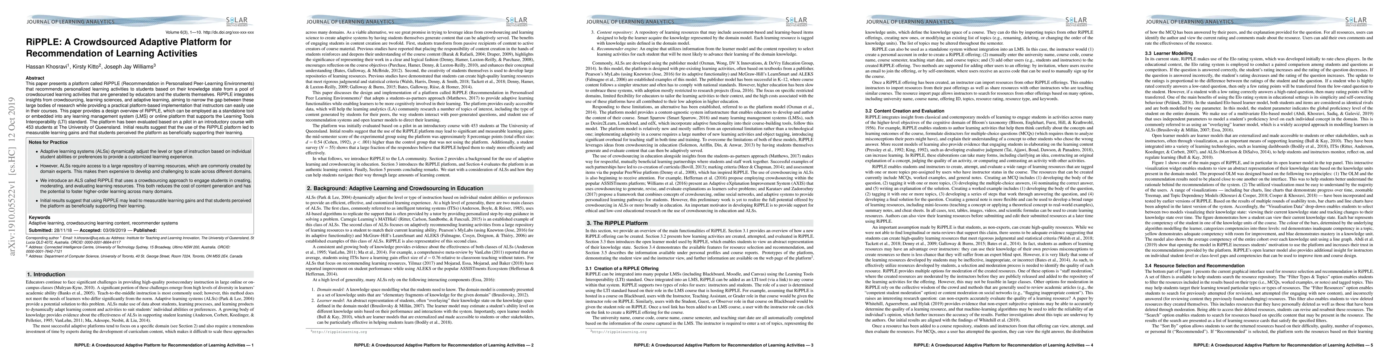 RiPPLE is a crowdsourced adaptive platform that recommends personalized learning activities to students based on their knowledge state. Initial pilot results from an introductory course show measurable learning gains and positive student perceptions.