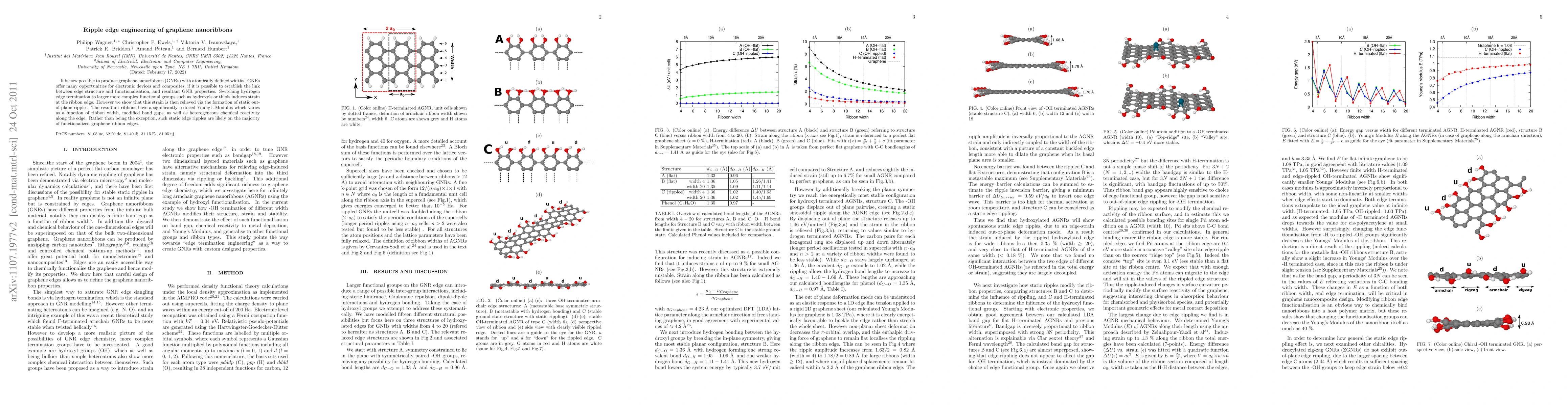 It is now possible to produce graphene nanoribbons (GNRs) with atomically defined widths. GNRs offer many opportunities for electronic devices and composites, if it is possible to establish the link between edge structure and functionalisation, and resultant GNR properties. Switching hydrogen edge termination to larger more complex functional groups such as hydroxyls or thiols induces strain at the ribbon edge. However we show that this strain is then relieved via the formation of static out-of-plane ripples. The resultant ribbons have a significantly reduced Young's Modulus which varies as a function of ribbon width, modified band gaps, as well as heterogeneous chemical reactivity along the edge. Rather than being the exception, such static edge ripples are likely on the majority of functionalized graphene ribbon edges.