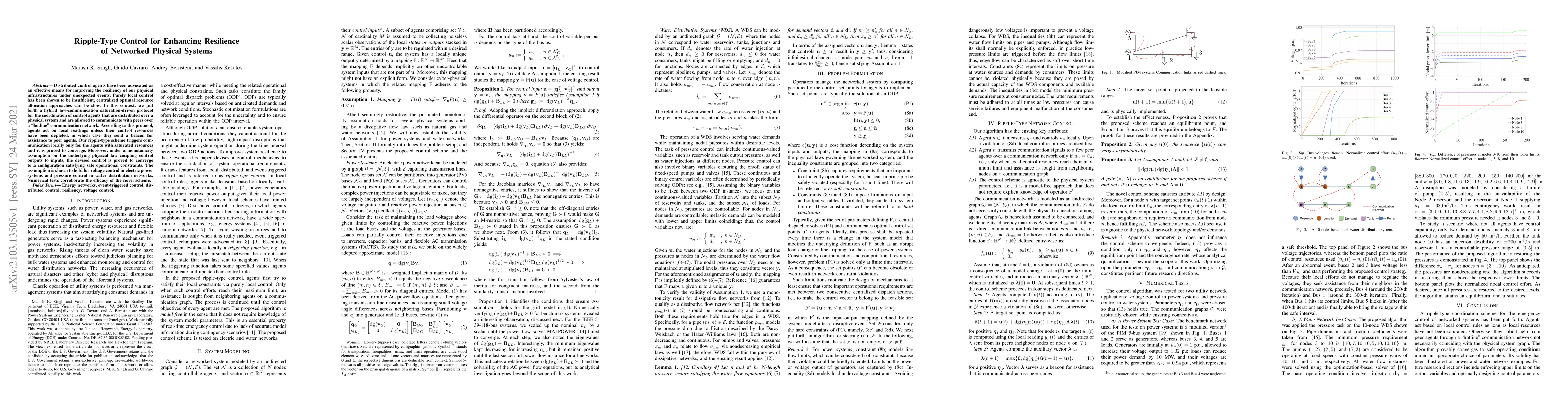 Distributed control agents have been advocated as an effective means for improving the resiliency of our physical infrastructures under unexpected events. Purely local control has been shown to be insufficient, centralized optimal resource allocation approaches can be slow. In this context, we put forth a hybrid low-communication saturation-driven protocol for the coordination of control agents that are distributed over a physical system and are allowed to communicate with peers over a "hotline" communication network. According to this protocol, agents act on local readings unless their control resources have been depleted, in which case they send a beacon for assistance to peer agents. Our ripple-type scheme triggers communication locally only for the agents with saturated resources and it is proved to converge. Moreover, under a monotonicity assumption on the underlying physical law coupling control outputs to inputs, the devised control is proved to converge to a configuration satisfying safe operational constraints. The assumption is shown to hold for voltage control in electric power systems and pressure control in water distribution networks. Numerical tests corroborate the efficacy of the novel scheme.
