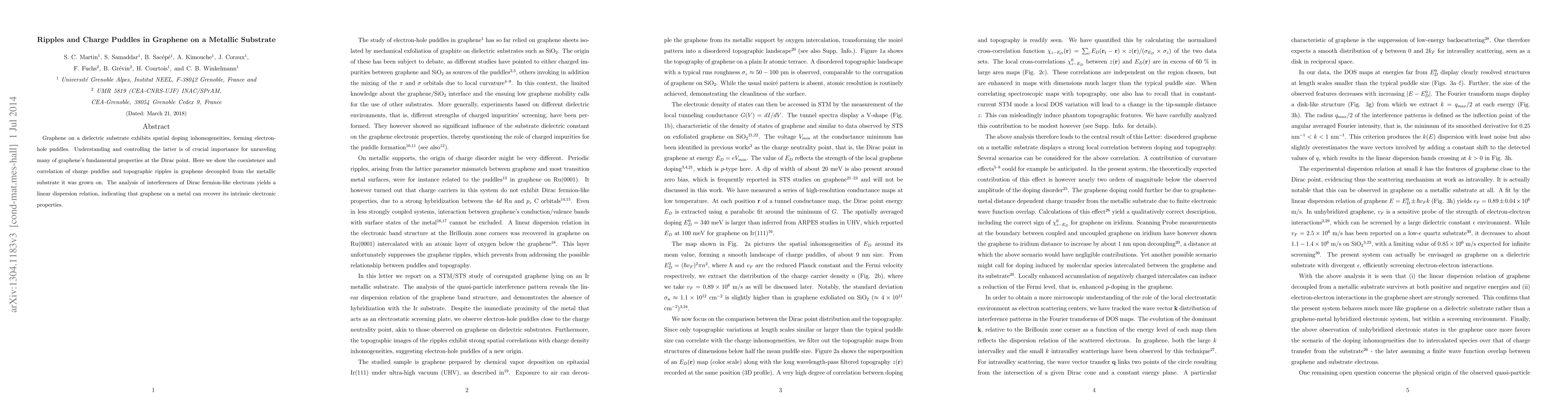 This study reveals the coexistence of charge puddles and ripples in graphene grown on a metallic substrate, demonstrating that these features correlate and can restore graphene's intrinsic electronic properties, evidenced by a linear dispersion relation of Dirac fermion-like electrons. Understanding these phenomena is crucial for exploring graphene's fundamental properties.