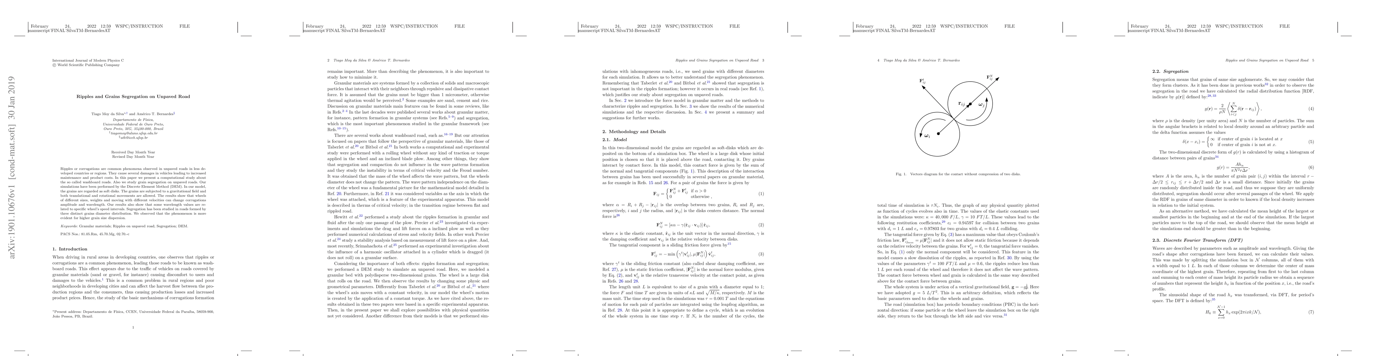 Researchers studied the effects of different wheel sizes, weights, and velocities on ripples in unpaved roads using computational simulations. They found that certain wheel speeds can create specific ripple patterns, and grain segregation is more pronounced with higher size dispersion.