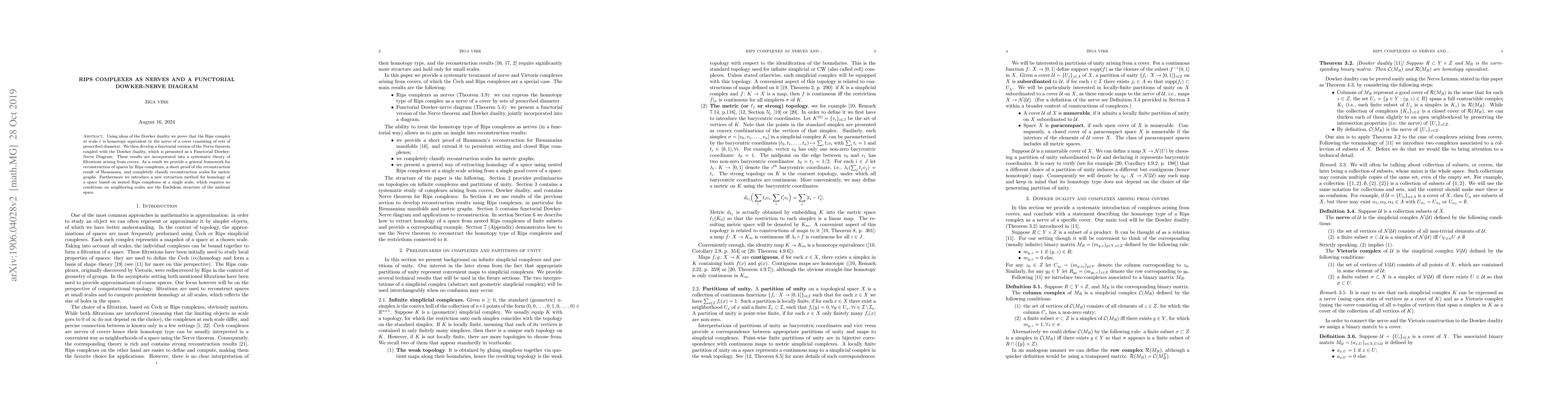 Using ideas of the Dowker duality we prove that the Rips complex at scale $r$ is homotopy equivalent to the nerve of a cover consisting of sets of prescribed diameter. We then develop a functorial version of the Nerve theorem coupled with the Dowker duality, which is presented as a Functorial Dowker-Nerve Diagram. These results are incorporated into a systematic theory of filtrations arising from covers. As a result we provide a general framework for reconstruction of spaces by Rips complexes, a short proof of the reconstruction result of Hausmann, and completely classify reconstruction scales for metric graphs. Furthermore we introduce a new extraction method for homology of a space based on nested Rips complexes at a single scale, which requires no conditions on neighboring scales nor the Euclidean structure of the ambient space.