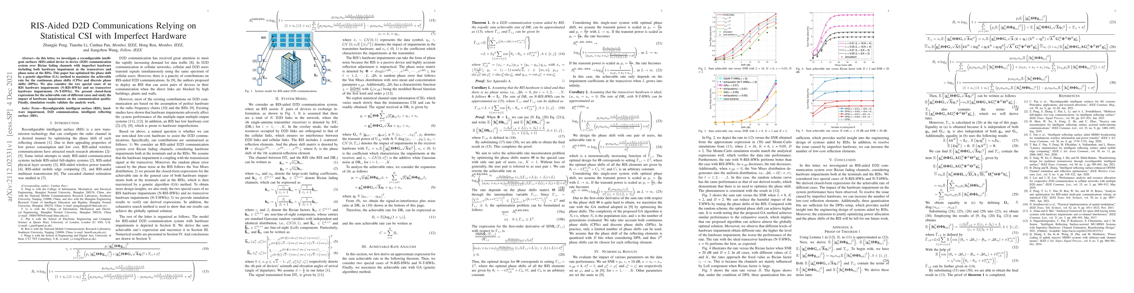 This paper explores RIS-aided D2D communications under Rician fading with hardware impairments, optimizing phase shifts using a genetic algorithm to maximize achievable rate. It presents closed-form expressions for different scenarios and validates the analysis with simulations.