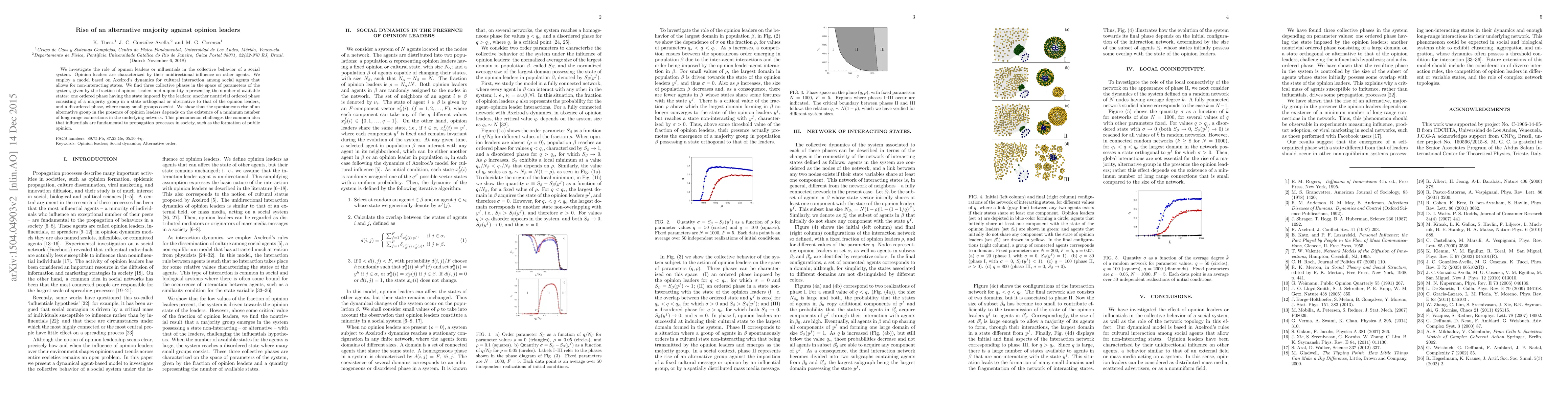This paper examines the influence of opinion leaders in social systems and identifies three collective behavioral phases: an ordered phase dominated by leaders, a nontrivial ordered phase where an alternative majority emerges, and a disordered phase with many small groups. The rise of an alternative majority is shown to depend on a sufficient number of long-range connections, challenging the notion that opinion leaders are essential for societal opinion formation.