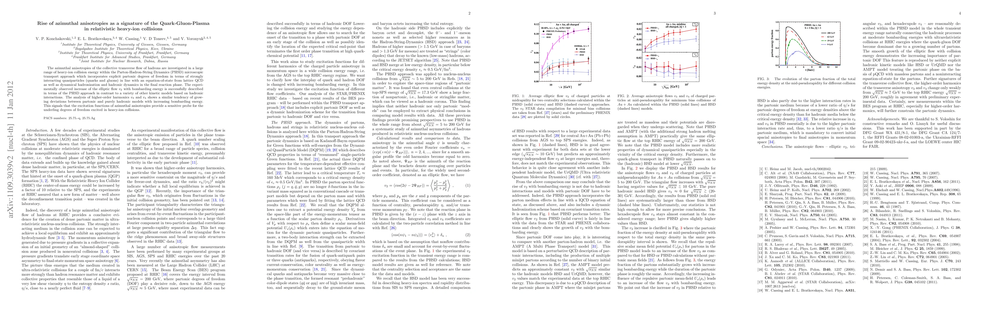 This paper investigates azimuthal anisotropies in heavy-ion collisions using the PHSD transport approach, showing that the observed increase in elliptic flow with energy indicates the presence of a Quark-Gluon-Plasma. Higher-order harmonics also reveal growing differences between partonic and hadronic models, suggesting these anisotropies are a sensitive probe for the underlying dynamics.