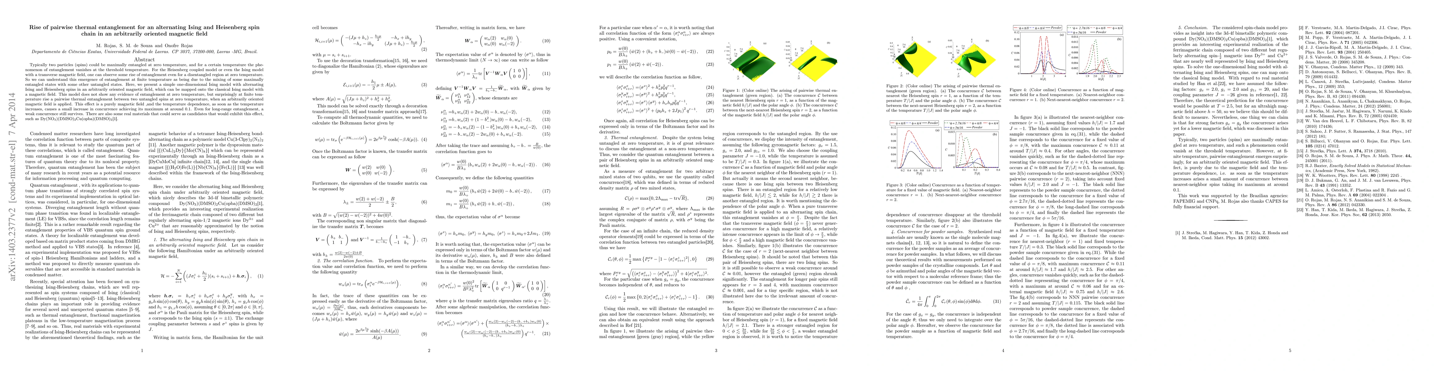 This paper investigates the emergence of pairwise thermal entanglement in a one-dimensional Ising model with alternating Ising and Heisenberg spins under an arbitrarily oriented magnetic field. At finite temperatures, the model exhibits a rise in entanglement between previously untangled spins, demonstrating a temperature-dependent increase in concurrence, with potential real-world candidates like Dy(NO$_{3}$)(DMSO)$_{2}$Cu(opba)(DMSO)$_{2}$.