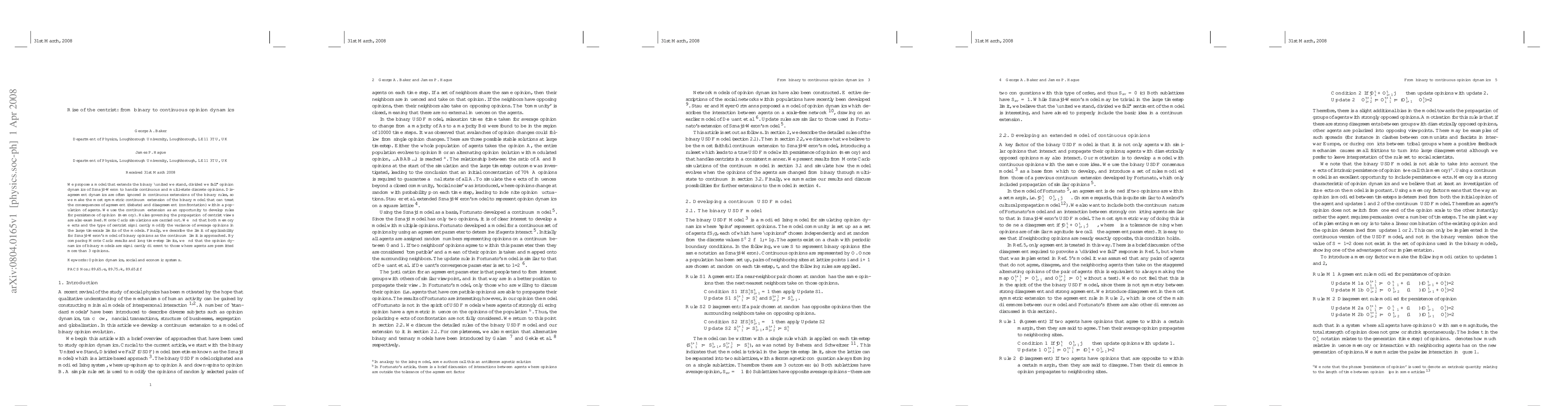 We propose a model that extends the binary ``united we stand, divided we fall'' opinion dynamics of Sznajd-Weron to handle continuous and multi-state discrete opinions. Disagreement dynamics are often ignored in continuous extensions of the binary rules, so we make the most symmetric continuum extension of the binary model that can treat the consequences of agreement (debate) and disagreement (confrontation) within a population of agents. We use the continuum extension as an opportunity to develop rules for persistence of opinion (memory). Rules governing the propagation of centrist views are also examined. Monte Carlo simulations are carried out. We find that both memory effects and the type of centrist significantly modify the variance of average opinions in the large timescale limits of the models. Finally, we describe the limit of applicability for Sznajd-Weron's model of binary opinions as the continuum limit is approached. By comparing Monte Carlo results and long time-step limits, we find that the opinion dynamics of binary models are significantly different to those where agents are permitted more than 3 opinions.