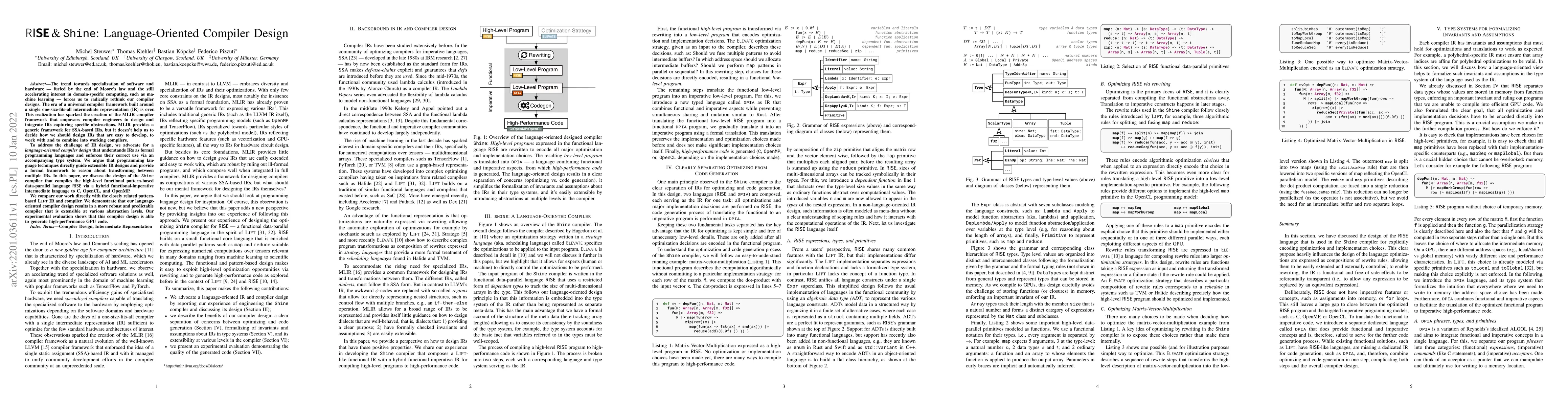 This paper introduces the Shine compiler, which employs a language-oriented approach to design intermediate representations (IRs) for compilers. It argues that treating IRs as formal programming languages enhances extensibility and correctness, and demonstrates its effectiveness through the compilation of the RISE language to various backends, showing superior performance and robustness compared to similar approaches.