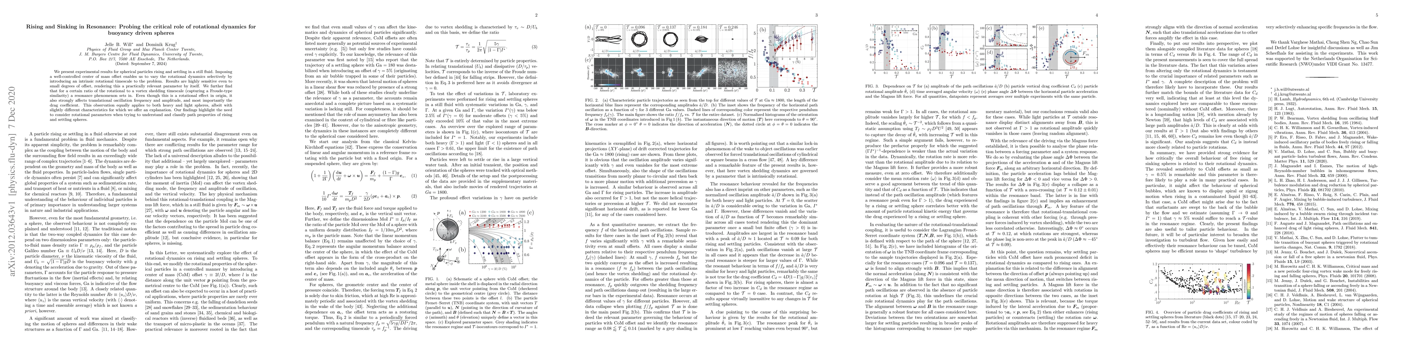 We present experimental results for spherical particles rising and settling in a still fluid. Imposing a well-controlled center of mass offset enables us to vary the rotational dynamics selectively by introducing an intrinsic rotational timescale to the problem. Results are highly sensitive even to small degrees of offset, rendering this a practically relevant parameter by itself. We further find that for a certain ratio of the rotational to a vortex shedding timescale (capturing a Froude-type similarity) a resonance phenomenon sets in. Even though this is a rotational effect in origin, it also strongly affects translational oscillation frequency and amplitude, and most importantly the drag coefficient. This observation equally applies to both heavy and light spheres, albeit with slightly different characteristics for which we offer an explanation. Our findings highlight the need to consider rotational parameters when trying to understand and classify path properties of rising and settling spheres.