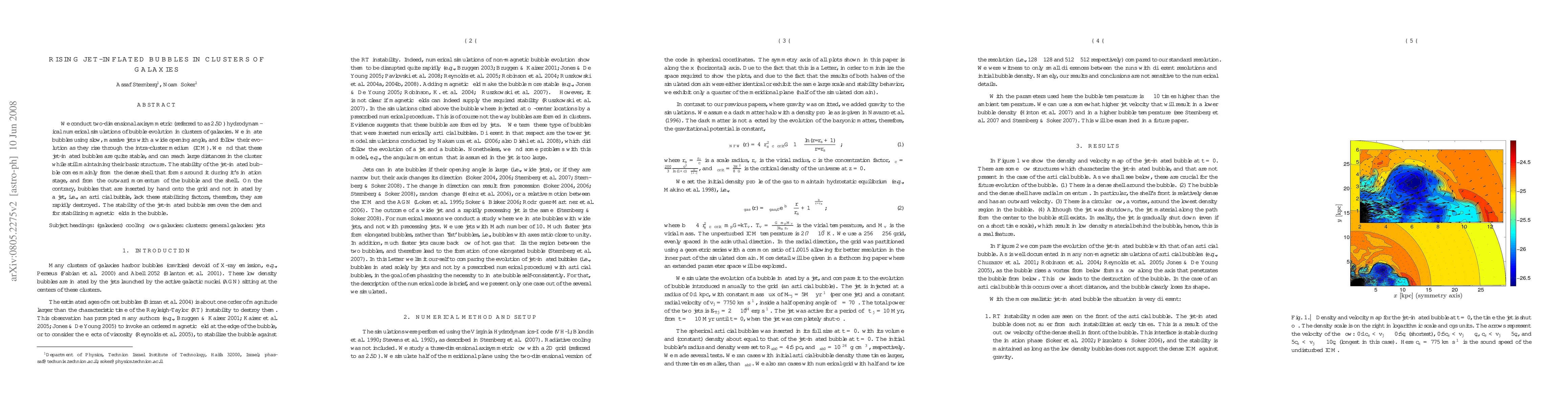This study uses 2.5D hydrodynamical simulations to explore the evolution of jet-inflated bubbles in galaxy clusters. These bubbles remain stable and can travel long distances due to the dense shell formed around them and the outward momentum, unlike artificial bubbles that lack these stabilizing factors.