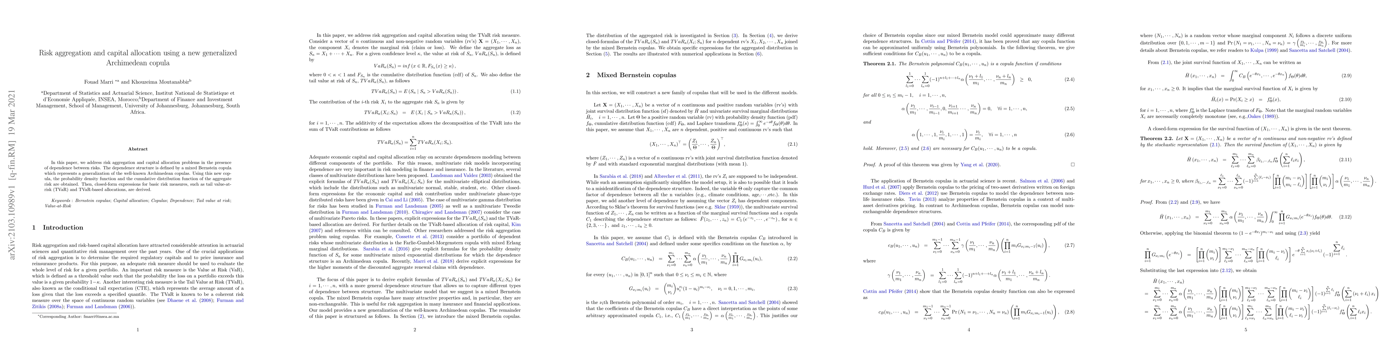 This paper introduces a new generalized Archimedean copula to model dependence in risk aggregation and capital allocation. It derives closed-form expressions for tail value-at-risk (TVaR) and TVaR-based allocations using the mixed Bernstein copula.