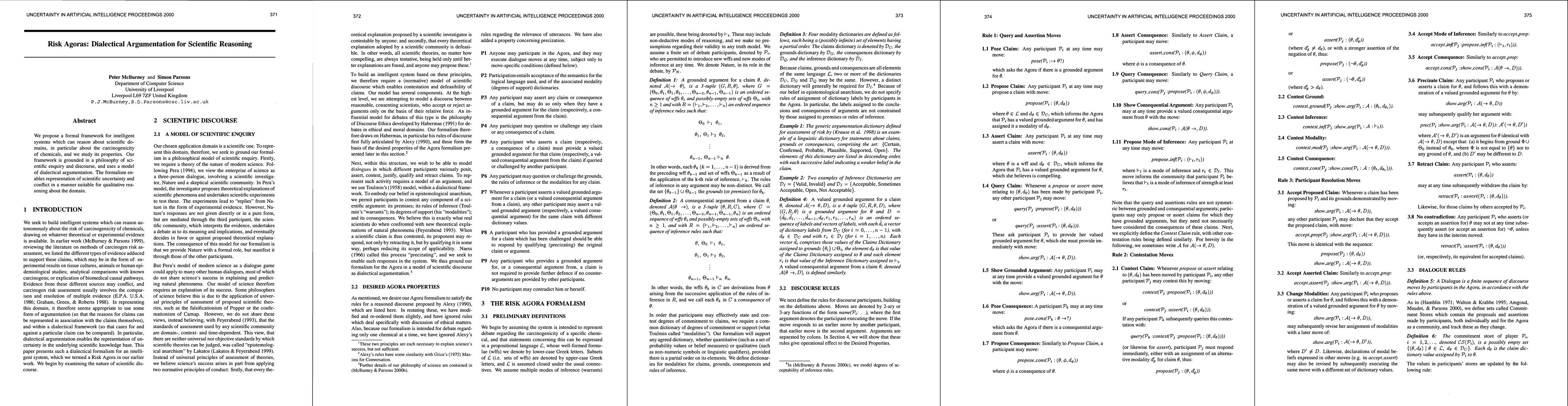 We propose a formal framework for intelligent systems which can reason about scientific domains, in particular about the carcinogenicity of chemicals, and we study its properties. Our framework is grounded in a philosophy of scientific enquiry and discourse, and uses a model of dialectical argumentation. The formalism enables representation of scientific uncertainty and conflict in a manner suitable for qualitative reasoning about the domain.