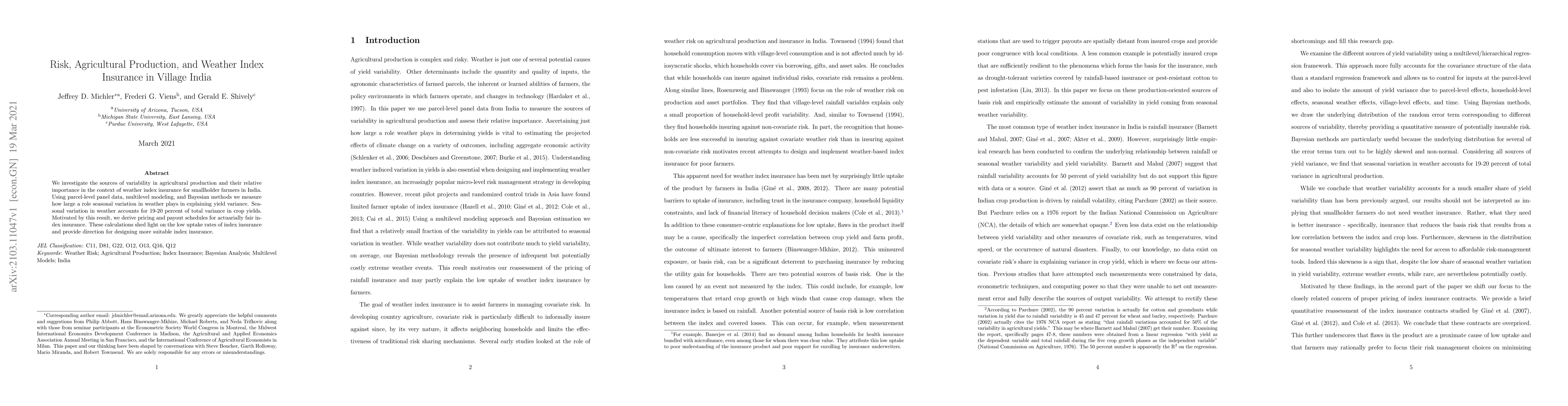 We investigate the sources of variability in agricultural production and their relative importance in the context of weather index insurance for smallholder farmers in India. Using parcel-level panel data, multilevel modeling, and Bayesian methods we measure how large a role seasonal variation in weather plays in explaining yield variance. Seasonal variation in weather accounts for 19-20 percent of total variance in crop yields. Motivated by this result, we derive pricing and payout schedules for actuarially fair index insurance. These calculations shed light on the low uptake rates of index insurance and provide direction for designing more suitable index insurance.