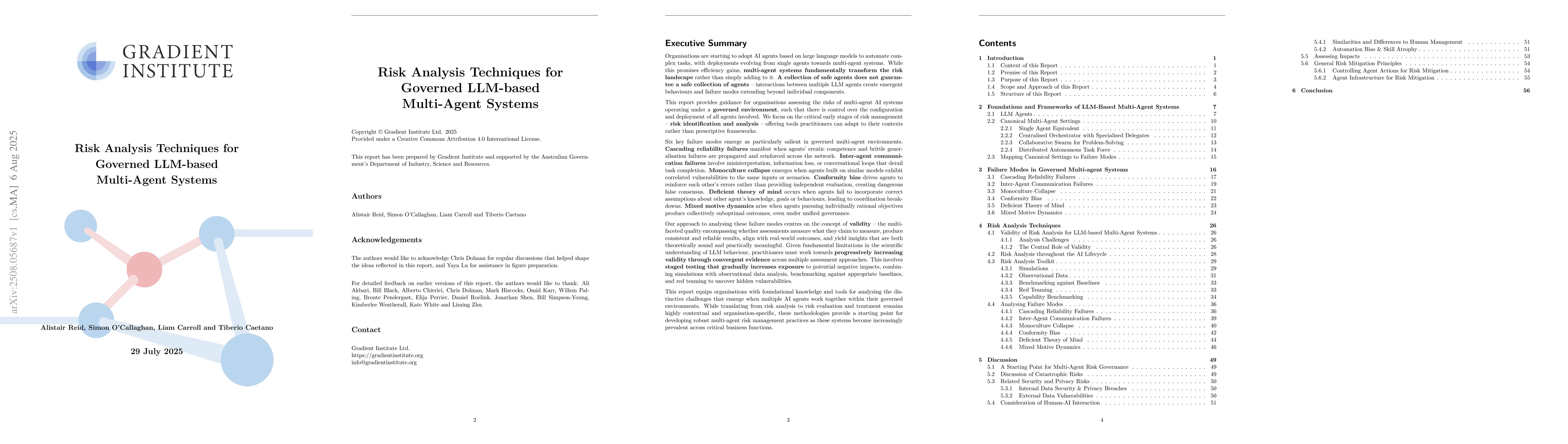 Organisations are starting to adopt LLM-based AI agents, with their deployments naturally evolving from single agents towards interconnected, multi-agent networks. Yet a collection of safe agents does not guarantee a safe collection of agents, as interactions between agents over time create emergent behaviours and induce novel failure modes. This means multi-agent systems require a fundamentally different risk analysis approach than that used for a single agent. This report addresses the early stages of risk identification and analysis for multi-agent AI systems operating within governed environments where organisations control their agent configurations and deployment. In this setting, we examine six critical failure modes: cascading reliability failures, inter-agent communication failures, monoculture collapse, conformity bias, deficient theory of mind, and mixed motive dynamics. For each, we provide a toolkit for practitioners to extend or integrate into their existing frameworks to assess these failure modes within their organisational contexts. Given fundamental limitations in current LLM behavioural understanding, our approach centres on analysis validity, and advocates for progressively increasing validity through staged testing across stages of abstraction and deployment that gradually increases exposure to potential negative impacts, while collecting convergent evidence through simulation, observational analysis, benchmarking, and red teaming. This methodology establishes the groundwork for robust organisational risk management as these LLM-based multi-agent systems are deployed and operated.