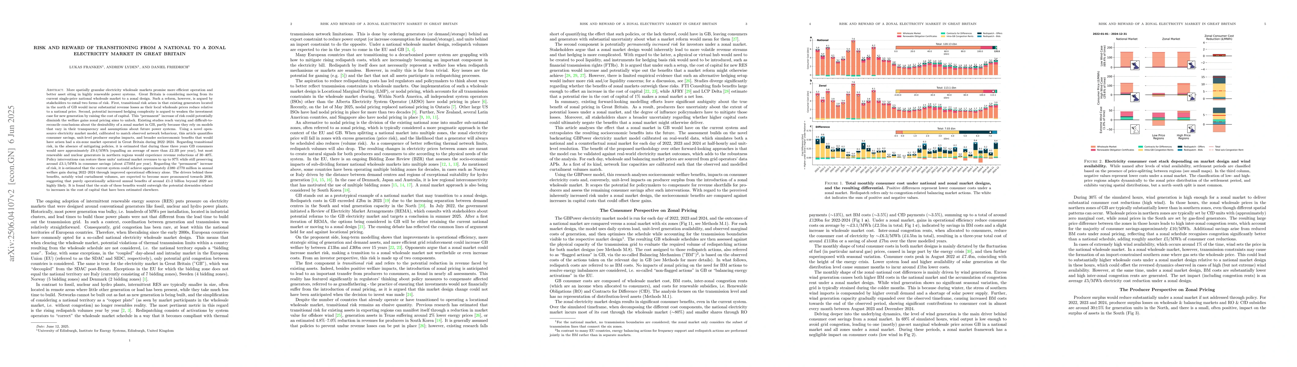 A study estimates that transitioning from a national to a zonal electricity market in Great Britain would result in consumer savings of around { }$2.3B per year, while generators in northern regions might experience revenue reductions of 30-40%.