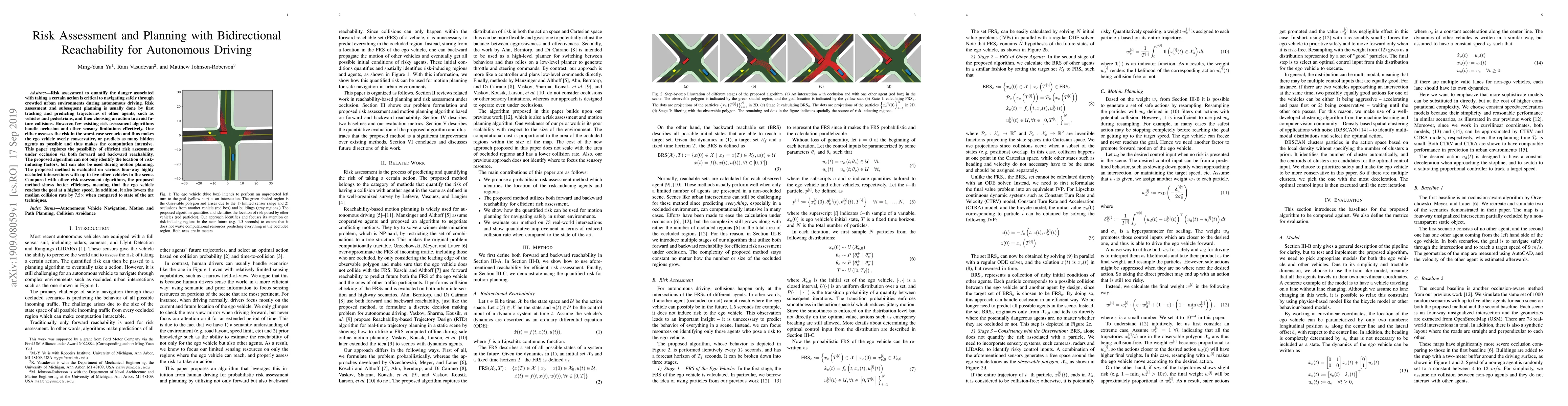This paper proposes a bidirectional reachability algorithm for risk assessment in autonomous driving, addressing occlusion and sensory limitations. The method enhances both risk identification and motion planning, achieving higher speeds and a 7.5x lower collision rate compared to existing algorithms, particularly in crowded, occluded intersections.
