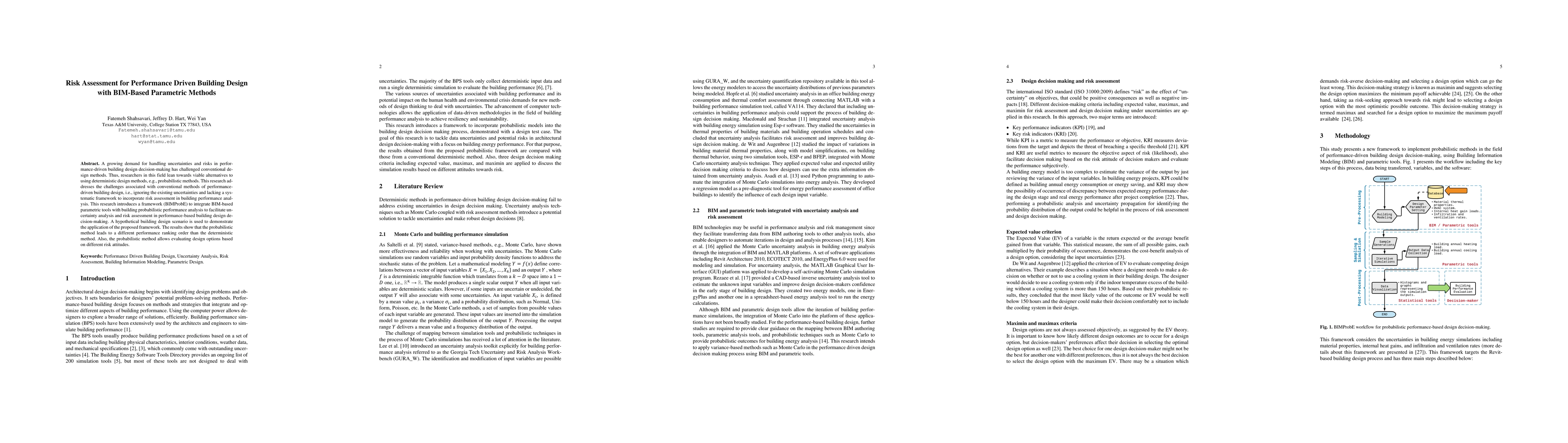 This research proposes a BIM-based framework (BIMProbE) to integrate parametric tools with probabilistic performance analysis for risk assessment in performance-driven building design, demonstrating its application through a hypothetical scenario. The results indicate that probabilistic methods yield different performance rankings and risk evaluations compared to deterministic methods.