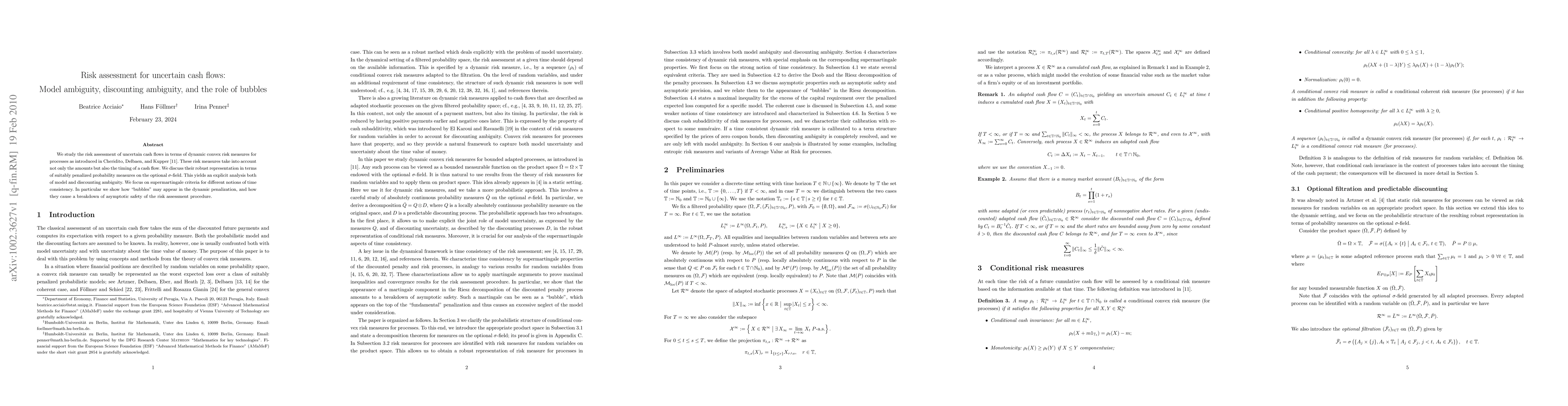 This paper examines risk assessment for uncertain cash flows using dynamic convex risk measures, focusing on model and discounting ambiguity. It reveals how bubbles can emerge in dynamic penalization, leading to a breakdown in the asymptotic safety of the risk assessment procedure.