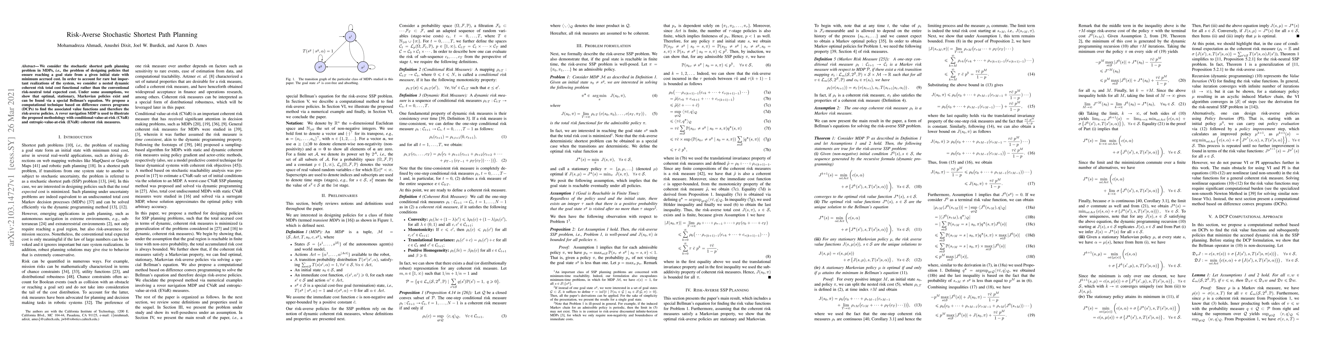 This paper addresses stochastic shortest path planning in Markov Decision Processes (MDPs) by minimizing risk-averse total costs using nested dynamic coherent risk measures. It proposes optimal, stationary Markovian policies found via a specialized Bellman's equation and computational techniques based on difference convex programs (DCPs). An example using rover navigation illustrates the methodology with conditional-value-at-risk (CVaR) and entropic-value-at-risk (EVaR) measures.